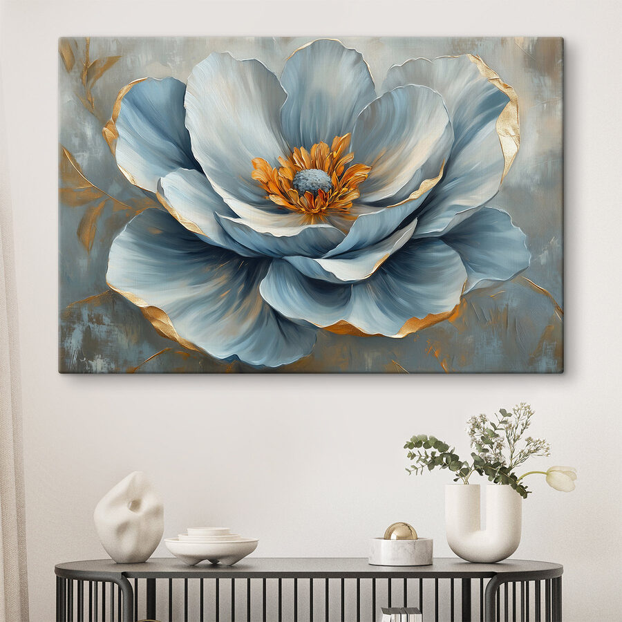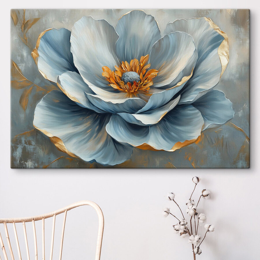 Dieser Leinwanddruck mit einer zarten blauen Blume in sanften Farbtönen verwandelt jeden Raum in eine heitere Oase. Es ist, als würde man einen Garten ins Haus holen, ohne die Gießkanne. Stellen Sie sich diese Schönheit in einer gemütlichen Ecke vor, wo sie jedes Mal, wenn Sie in ihre Richtung blicken, sanft ruhige Schwingungen ausstrahlt. Die sanften Farben laden zum Entspannen ein und eignen sich daher perfekt für eine Leseecke oder ein ruhiges Schlafzimmer. Und wer möchte seine Wände nicht zum Blühen bringen? Es ist, als ob man jedes Mal, wenn man daran vorbeigeht, ein kleines, glückliches Geheimnis hat, das Freude und einen Hauch von Laune in den Alltag zaubert.