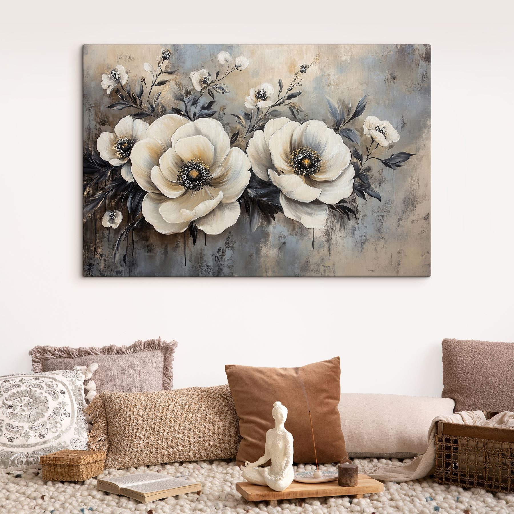 Verwandeln Sie Ihren Raum mit diesem atemberaubenden Leinwandbild mit zarten weißen Blumen. Es bringt einen Hauch von Natur ins Haus, ohne dass Sie einen grünen Daumen haben müssen – ein echter Gewinn! Stellen Sie sich vor, Sie betreten einen Raum und werden von diesen zarten Blüten begrüßt, die sanft ein Gefühl von Ruhe und Gelassenheit verbreiten. Jede Blume scheint ihre eigene kleine Geschichte zu erzählen, perfekt, um Gespräche bei gemütlichen Zusammenkünften anzuregen. Die neutralen Töne lassen sich mühelos kombinieren und passen zu jedem Einrichtungsstil. Ob über der Couch oder im Arbeitszimmer, dieses Stück ist wie ein erfrischender Hauch von frischer Luft. Vergessen Sie nur nicht, es mit Komplimenten zu überhäufen!