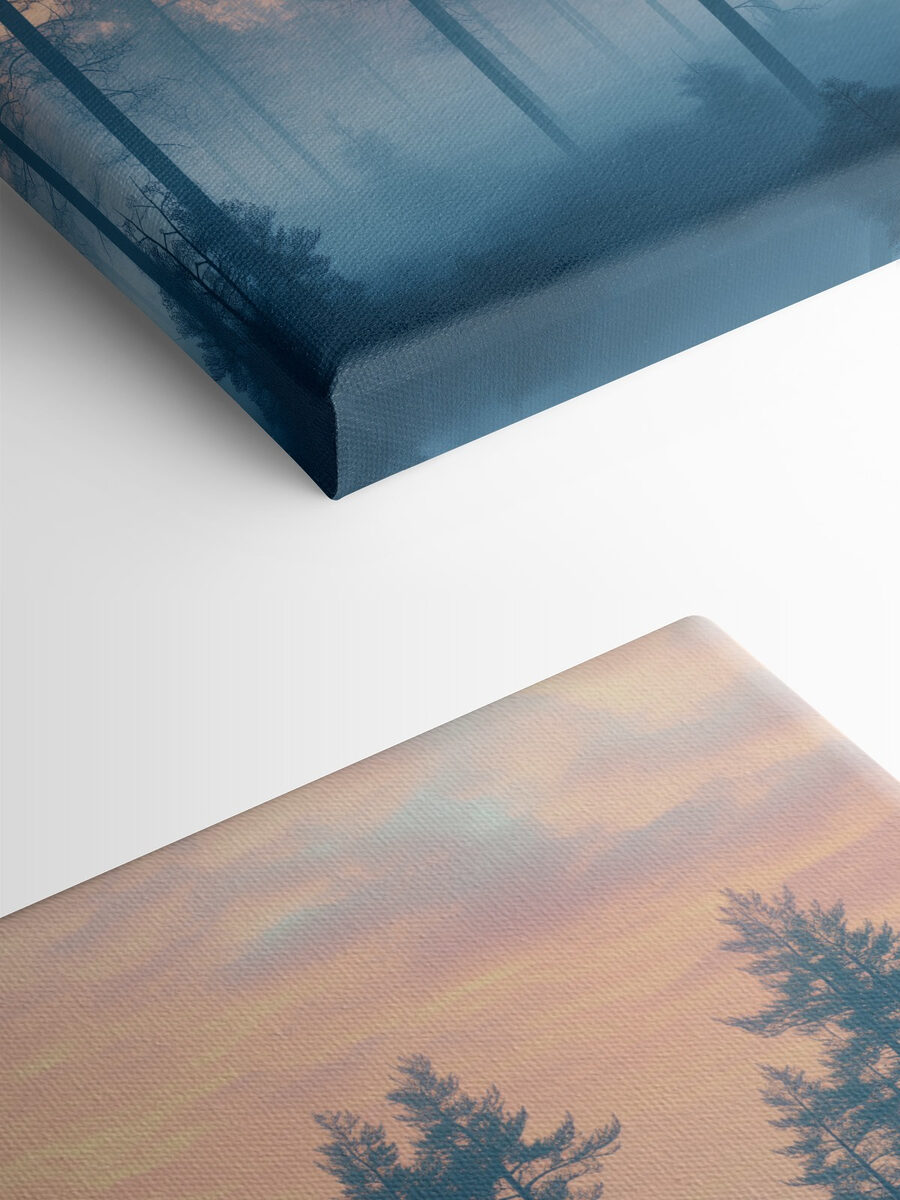 Lassen Sie sich mit diesem bezaubernden Leinwandbild eines nebligen Waldes in eine traumhafte Welt entführen. Stellen Sie sich vor, Sie wachen in dieser heiteren Szene auf – hohe, majestätische Bäume, die sanft in Nebel gehüllt sind und Sie in ihre ruhige Umarmung ziehen. Es ist wie ein Hauch von frischer Luft für jeden Raum und bringt einen Hauch von Natur direkt an Ihre Wand. Stellen Sie sich gemütliche Abende vor, an denen die sanften Farben der Morgendämmerung durch den Nebel schimmern und eine friedliche Stimmung hervorrufen. Dieses Stück hängt nicht einfach nur da, sondern lädt zum Nachdenken ein und weckt Tagträume von Abenteuern im Wald oder ruhigen Spaziergängen. Perfekt für einen Raum, der nach Ruhe ruft, flüstert es: “Bleib eine Weile.