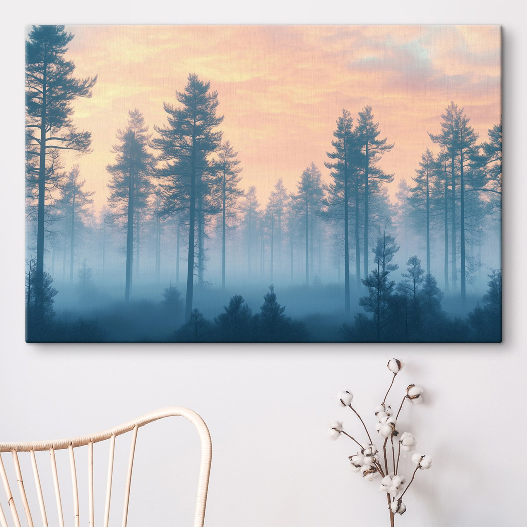 Lassen Sie sich mit diesem bezaubernden Leinwandbild eines nebligen Waldes in eine traumhafte Welt entführen. Stellen Sie sich vor, Sie wachen in dieser heiteren Szene auf – hohe, majestätische Bäume, die sanft in Nebel gehüllt sind und Sie in ihre ruhige Umarmung ziehen. Es ist wie ein Hauch von frischer Luft für jeden Raum und bringt einen Hauch von Natur direkt an Ihre Wand. Stellen Sie sich gemütliche Abende vor, an denen die sanften Farben der Morgendämmerung durch den Nebel schimmern und eine friedliche Stimmung hervorrufen. Dieses Stück hängt nicht einfach nur da, sondern lädt zum Nachdenken ein und weckt Tagträume von Abenteuern im Wald oder ruhigen Spaziergängen. Perfekt für einen Raum, der nach Ruhe ruft, flüstert es: “Bleib eine Weile.