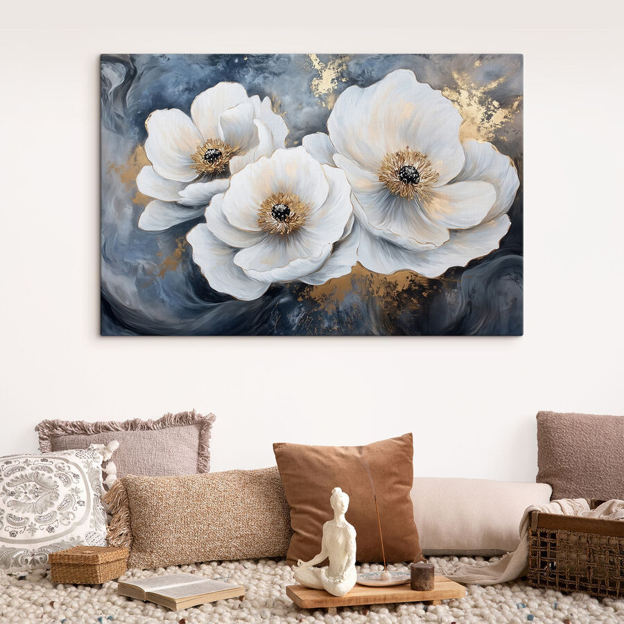 Verschönern Sie jede Ecke mit diesem atemberaubenden Leinwanddruck mit weißen Blumen, der wie ein frischer Wind wirkt. Stellen Sie sich vor, Sie betreten Ihr Zimmer und werden von diesen eleganten Blüten begrüßt, deren Blütenblätter vor einem satten, stimmungsvollen Hintergrund einen Hauch von Sanftheit versprühen. Es ist, als hätten Sie einen Garten in Ihrem Haus, nur ohne die lästigen Bienen! Dieses Kunstwerk eignet sich perfekt für gemütliche Abende oder lebhafte Zusammenkünfte und lädt zu einem Lächeln und Komplimenten ein. Es ist ein kleines Stück Natur, das Ihren Raum in einen ruhigen Rückzugsort verwandeln kann. Mal ehrlich, wer liebt keine Blumen?