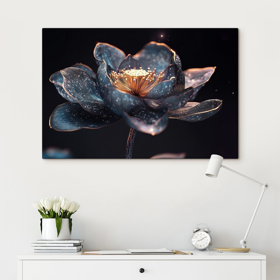 Erhellen Sie jeden Raum mit “Enchanting Bloom in Dark Hues”. Dieser Leinwanddruck verbindet mühelos Eleganz mit einem Hauch von Geheimnis, wie eine Blume, die gerade im Mondlicht erblüht ist. Stellen Sie sich das Bild an Ihrer Wand vor – seine tiefen, satten Farben ziehen Sie an, als würden sie Geheimnisse aus einem verborgenen Garten flüstern. Es eignet sich perfekt, um eine gemütliche Ecke zu schaffen, oder sogar als Gesprächsanlass, wenn Freunde vorbeikommen. Stellen Sie sich vor, wie jemand das Bild ansieht und sich ruhig und doch fasziniert fühlt. Es ist mehr als nur Kunst; es ist eine tägliche Erinnerung daran, dass Schönheit auch an unerwarteten Orten gedeihen kann. Eine schöne Ergänzung für jede Sammlung!