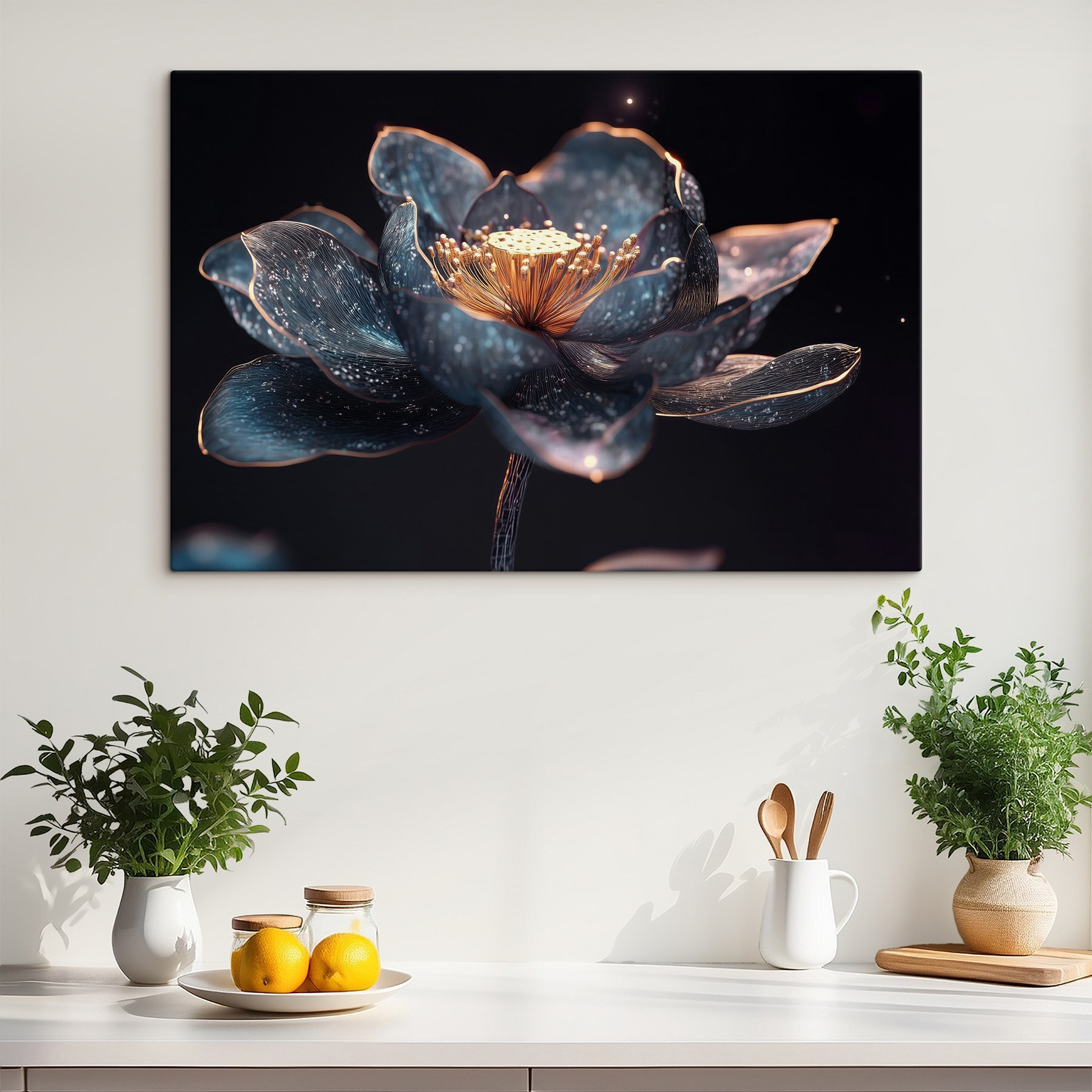 Erhellen Sie jeden Raum mit “Enchanting Bloom in Dark Hues”. Dieser Leinwanddruck verbindet mühelos Eleganz mit einem Hauch von Geheimnis, wie eine Blume, die gerade im Mondlicht erblüht ist. Stellen Sie sich das Bild an Ihrer Wand vor – seine tiefen, satten Farben ziehen Sie an, als würden sie Geheimnisse aus einem verborgenen Garten flüstern. Es eignet sich perfekt, um eine gemütliche Ecke zu schaffen, oder sogar als Gesprächsanlass, wenn Freunde vorbeikommen. Stellen Sie sich vor, wie jemand das Bild ansieht und sich ruhig und doch fasziniert fühlt. Es ist mehr als nur Kunst; es ist eine tägliche Erinnerung daran, dass Schönheit auch an unerwarteten Orten gedeihen kann. Eine schöne Ergänzung für jede Sammlung!