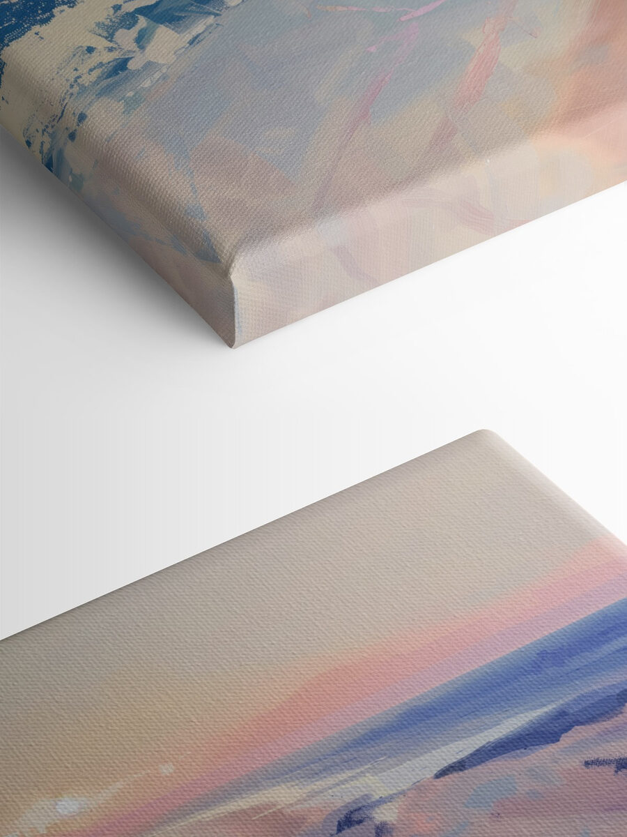 Stellen Sie sich vor, Sie kommen nach einem langen Tag nach Hause und werden von einem atemberaubenden Gemälde eines Sonnenuntergangs am Strand begrüßt, der den Stress sofort vergessen lässt. Dieses Leinwandbild fängt den verträumten pastellfarbenen Himmel und die glitzernden Wellen ein und schafft eine Atmosphäre, die sich wie ein Mini-Urlaub direkt in Ihrem Wohnzimmer anfühlt. Es ist perfekt für alle, die das Meer lieben oder einfach nur einen Farbtupfer brauchen, und wird Ihre Gäste zum Staunen bringen. Es ist wie eine warme Umarmung vom Meer! Hängen Sie es auf und machen Sie sich bereit, jedes Mal, wenn Sie vorbeikommen, von sandigen Zehen und salzigen Brisen zu träumen. Außerdem ist kein Sonnenbrand erforderlich!
