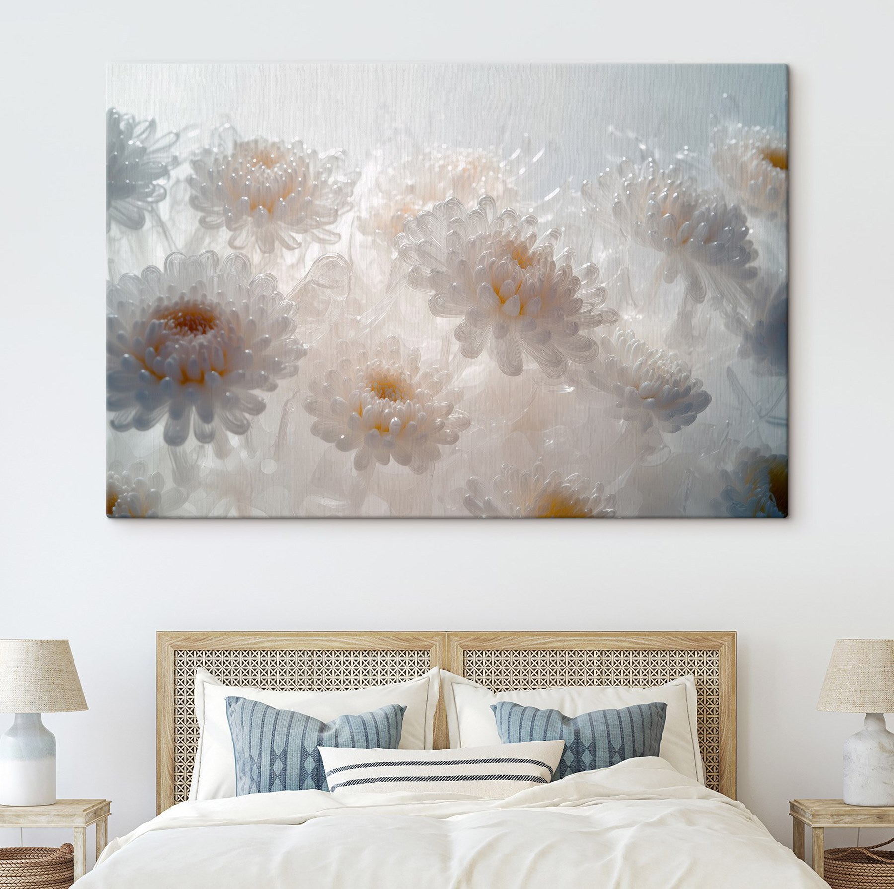 Verschönern Sie jeden Raum mit diesem bezaubernden Leinwandbild, das eine Gruppe weißer Blumen zeigt. Stellen Sie sich vor, Sie betreten Ihren Wohnbereich und da ist sie, eine sanfte Explosion der Schönheit der Natur, die an Ihrer Wand hängt. Diese Blumen scheinen zu flüstern: “Atme durch, alles ist gut!” Sie eignen sich perfekt für eine gemütliche Leseecke oder ein ruhiges Schlafzimmer und vermitteln ein Gefühl von Frieden, das sich einfach gut anfühlt. Außerdem müssen sie nicht gegossen werden, was immer ein Vorteil ist! Es ist, als hätte man seinen eigenen Garten, nur ohne die lästigen Bienen. Verschönern Sie Ihre Wände und lassen Sie sich von diesen Blüten ein Lächeln ins Gesicht zaubern!