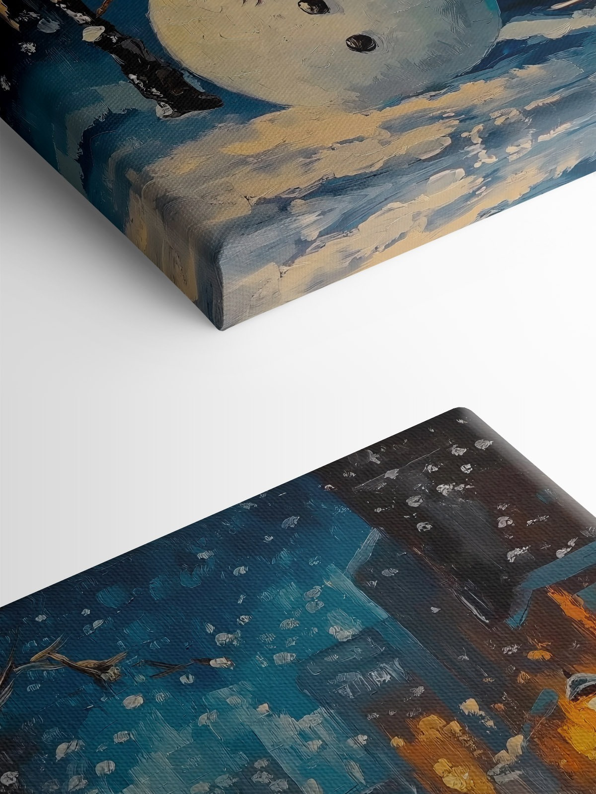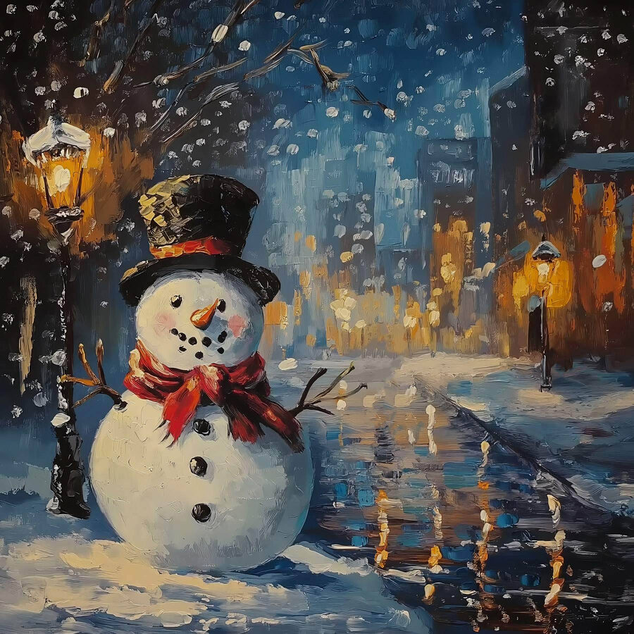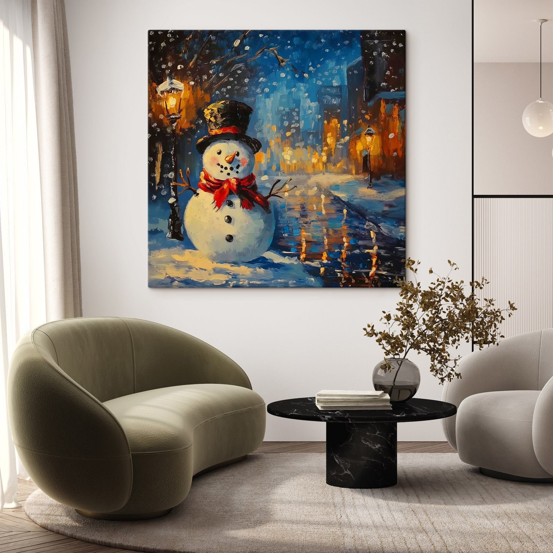 Stellen Sie sich vor, Sie machen es sich in Ihrem Wohnzimmer gemütlich, mit einem warmen Getränk in der Hand, während dieser entzückende Leinwanddruck eines Schneemanns vor dem Hintergrund einer verschneiten Stadt seinen Charme versprüht. Ein leuchtend roter Schal, ein kecker Zylinder und ein freches Lächeln erwecken diesen kleinen Kerl zum Leben und rufen Erinnerungen an Schneeballschlachten und Lachen in der Winterkälte hervor. Mit den sanften Schneeflocken, die um ihn herum tanzen, und den Straßenlaternen, die ein warmes Licht verbreiten, ist es wie eine sanfte Umarmung für Ihre Wände. Dieses Stück ist nicht nur eine Dekoration, sondern auch eine Herzensangelegenheit, die Freude und Nostalgie in jeden Raum bringt. Dieses Bild ist perfekt für alle, die einzigartige Dekoration lieben und einen Hauch von Laune zu schätzen wissen, und könnte Sie zu Ihrem nächsten Winterabenteuer inspirieren. Wer weiß, vielleicht inspiriert es Sie sogar zu einem Schneemann-Bauwettbewerb!