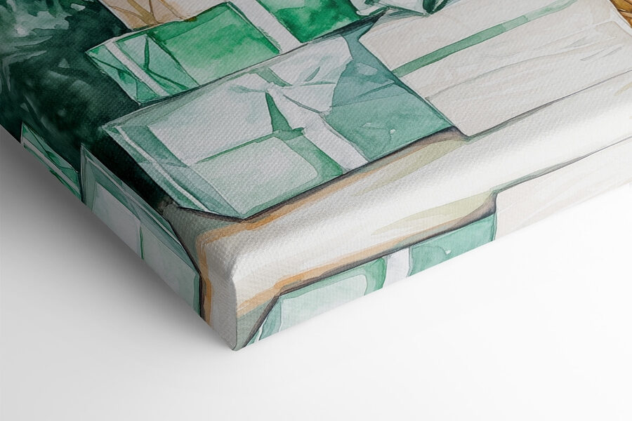 Stellen Sie sich vor, Sie betreten einen Raum, in dem es nach Tannengrün und Keksen duftet, und dann ist es da – ein charmanter Leinwanddruck, der eine skurrile Aquarellszene mit Geschenken unter einem Baum zeigt. Jedes Geschenk, das in sanfte Farben eingewickelt ist, schafft eine gemütliche Atmosphäre, die Freude und Nostalgie hervorruft. Es ist wie der Moment, in dem man kurz davor ist, eine Überraschung auszupacken. Hängen Sie es in einem Wohnzimmer oder Büro auf, und es hebt sofort die Stimmung. Freunde könnten auf der Couch lümmeln und es bewundern, während sie lachen und Geschichten erzählen. Dieses Stück fühlt sich an wie eine warme Umarmung an einem kühlen Tag – perfekt, um jeden Raum ein wenig festlicher und einladender zu gestalten.
