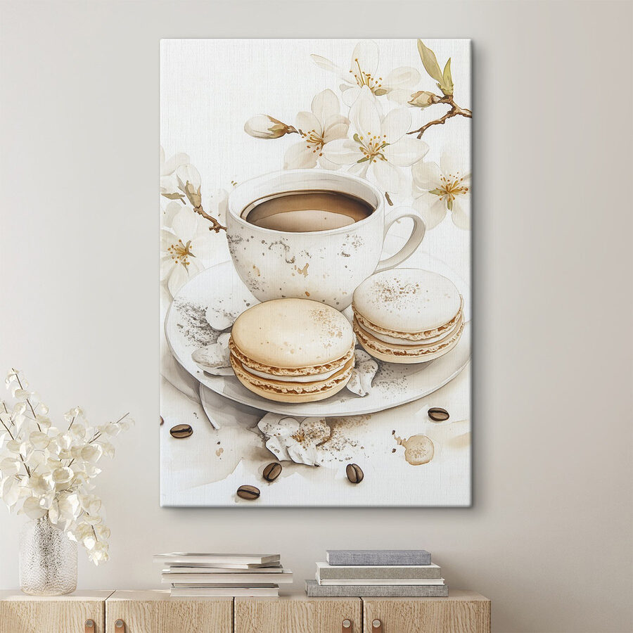 Dieser bezaubernde Leinwanddruck bringt die Atmosphäre eines gemütlichen Cafés direkt in Ihr Zuhause. Stellen Sie sich vor, wie Sie in aller Ruhe einen Schluck Kaffee trinken, während die leckeren Kekse einladend auf dem Teller liegen und auf einen Freund warten – oder vielleicht auch nur auf Sie selbst um 3 Uhr nachts, ohne dass Sie das beurteilen können! Die sanften Farbtöne und die floralen Details verleihen ihm eine träumerische Qualität, die perfekt ist, um eine Küche oder eine Leseecke zu verschönern. Es ist wie eine warme Umarmung an einem kühlen Tag. Hängen Sie es auf, und Sie werden sofort das Verlangen verspüren, eine frische Kanne aufzubrühen und sich zu verwöhnen. Wer hätte gedacht, dass Kunst so köstlich inspirierend sein kann?