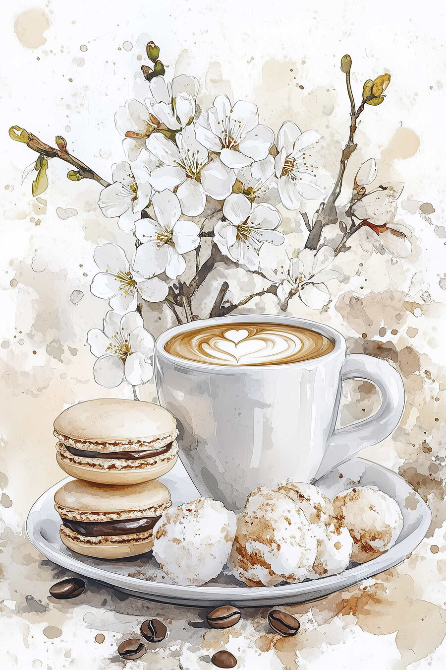 Stellen Sie sich vor, wie Sie es sich in Ihrem Lieblingssessel mit einer Tasse Kaffee und einem Teller Kekse gemütlich machen – das ist doch das reinste Glück, oder? Dieser entzückende Leinwanddruck fängt diesen süßen Moment perfekt ein. Das Bild zeigt eine schöne Latte mit Herzmotiv und leckeren Keksen und verleiht jedem Raum eine warme Note. Die zarten Blüten im Hintergrund verbreiten Frühlingsstimmung, egal zu welcher Jahreszeit. Hängen Sie es in der Küche auf und lassen Sie sich zu Backabenteuern inspirieren, oder stellen Sie es in einem Café auf, um eine einladende Atmosphäre zu schaffen. Es ist, als hätte man ein kleines Stück Gemütlichkeit an der Wand – jeder Blick auf dieses Stück zaubert ein Lächeln und vielleicht ein kleines Verlangen nach einem Dessert.
