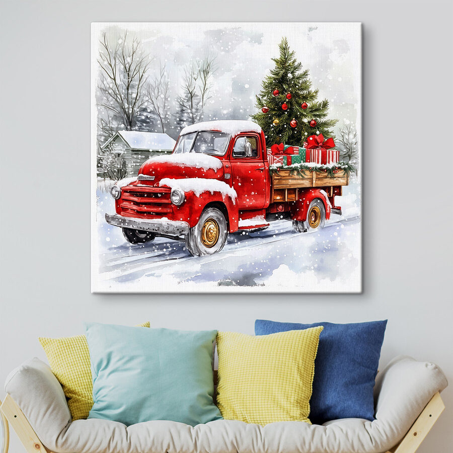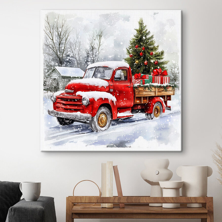 Stellen Sie sich vor, Sie machen es sich in Ihrem Wohnzimmer gemütlich, mit einem heißen Kakao in der Hand, und dieser charmante Leinwanddruck sorgt für festliche Stimmung. “Wandbilder Red Truck with a Christmas Tree on the Back” fängt eine klassische Szene ein, die sich wie eine warme Umarmung an einem verschneiten Tag anfühlt. Stellen Sie sich vor: Ein alter roter Lastwagen, beladen mit einem funkelnden Weihnachtsbaum und eingepackten Geschenken, lässt Sie an gemütliche Wintererinnerungen denken. Es ist, als wären die Feiertage in einem herrlichen Bild vereint! Es ist perfekt, um eine fröhliche Stimmung zu schaffen und verleiht jedem Raum einen Hauch von Nostalgie. Ob es sich um ein Familientreffen oder einen ruhigen Abend handelt, dieses Stück wird sicherlich ein Lächeln und Geschichten hervorrufen. Und seien wir ehrlich – wer liebt nicht einen Lastwagen mit Baum? Es ist genau die richtige Dosis an festlicher Stimmung, die sagt: “Lass uns ein paar Erinnerungen schaffen.” Hängen Sie ihn auf, und lassen Sie sich von der Weihnachtsstimmung anstecken!