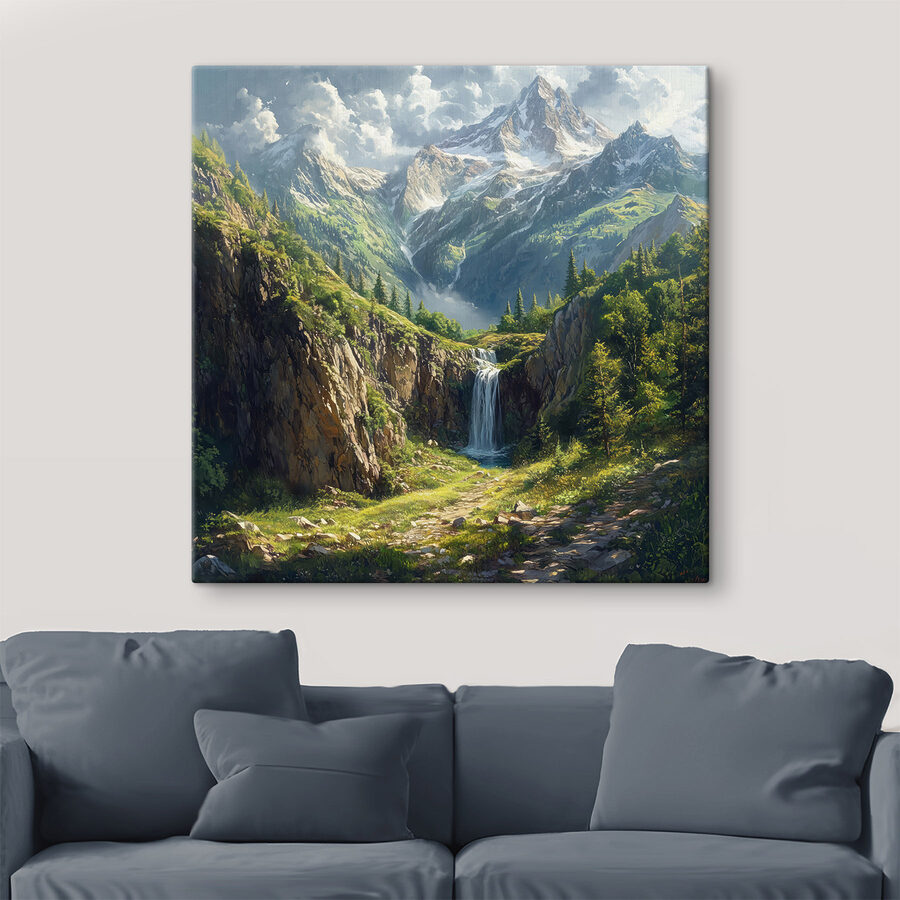 Stellen Sie sich vor, dass Sie direkt in Ihrem Wohnzimmer in eine ruhige Welt eintauchen. Das Bild “Waterfall in a Mountain” fängt eine atemberaubende Szene ein, in der üppiges Grün auf majestätische Gipfel trifft. Das in Kaskaden herabstürzende Wasser scheint beruhigende Geheimnisse zu flüstern, während die leuchtenden Farben das Auge zum Wandern einladen. Es ist wie ein Abenteuer im Freien, ohne dass man Wanderschuhe oder Mückenspray braucht! Ob es sich um eine gemütliche Ecke oder eine breite Wand handelt, dieses Stück verwandelt jeden Raum und lässt ihn lebendig und einladend wirken. Perfekt für Tagträumer und Naturliebhaber, ein Kunstwerk, das Freude und vielleicht sogar ein wenig Fernweh weckt. Wenn es dort hängt, erinnert es uns sofort an die Schönheit jenseits unseres geschäftigen Lebens – wie ein sanfter Anstoß, innezuhalten, zu atmen und die einfachen Dinge zu schätzen.