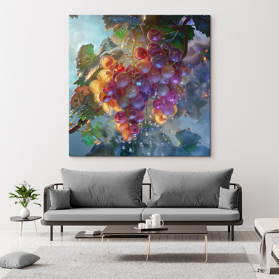 Verleihen Sie jedem Raum einen Hauch von Farbe mit diesem atemberaubenden Leinwandbild “Weintrauben mit Wassertropfen”. Stellen Sie sich vor, Sie betreten Ihren Raum und haben sofort das Gefühl, einen sonnigen Weinberg betreten zu haben. Diese saftigen, glitzernden Trauben schreien förmlich nach Frische – jedes Tröpfchen fängt das Licht genau richtig ein. Es ist fast so, als ob man die süßen Noten des Weins in der Luft riechen kann, oder? Perfekt für die Küche oder den Essbereich, verbindet dieses Stück die Schönheit der Natur mit einem Hauch von Eleganz. Außerdem könnte es zu einem spontanen Weinabend inspirieren. Wer liebt das nicht? Also, hängen Sie es auf und lassen Sie diese Trauben ein Lächeln auf jede Versammlung zaubern.