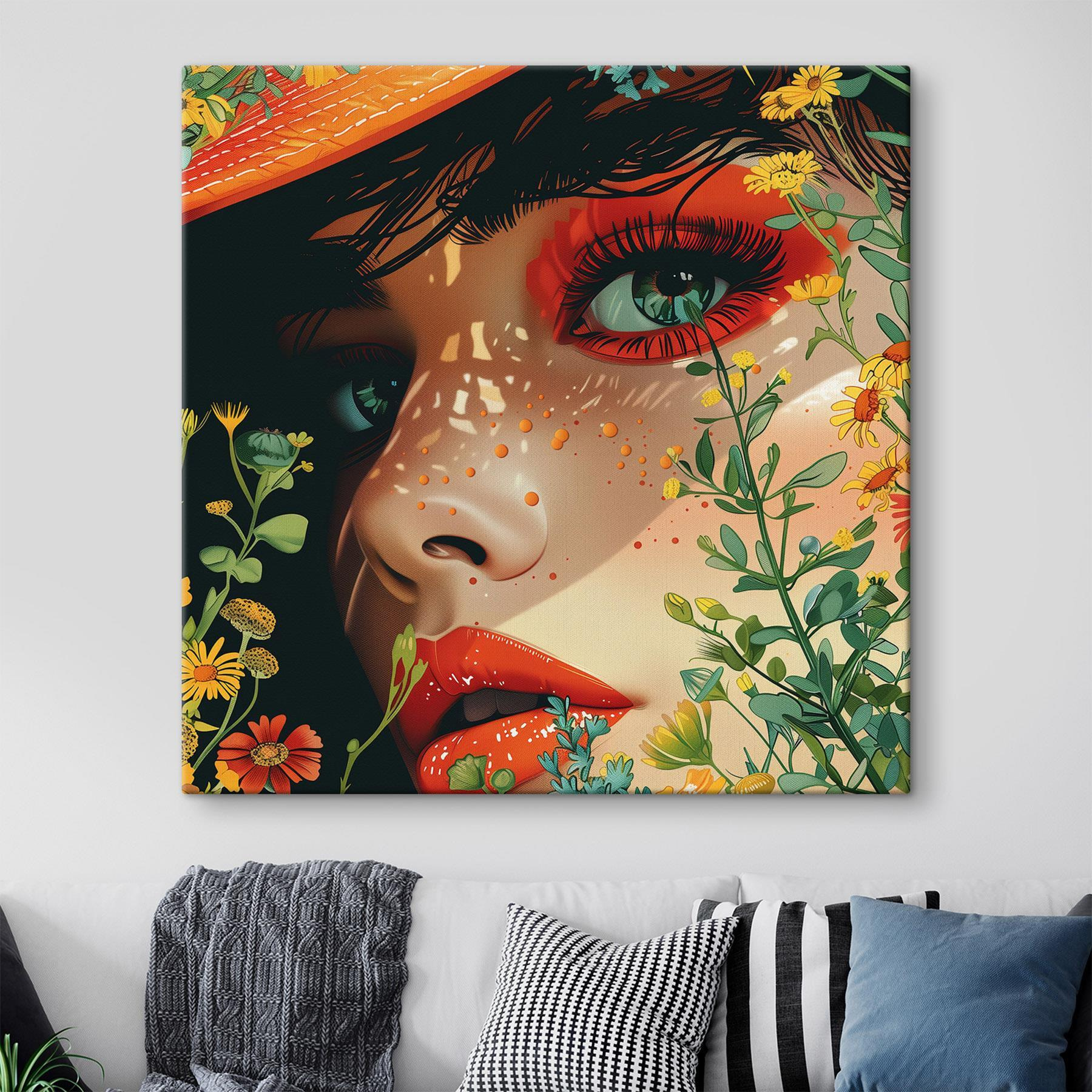 Dieses farbenfrohe und lebendige Leinwandbild einer Frau mit Hut, umgeben von Blumen, verleiht jedem Raum einen Hauch von Magie. Stellen Sie sich vor, Sie betreten einen Raum und werden von ihrem bezaubernden Blick begrüßt – die verspielten Sommersprossen und die leuchtenden Farben sind wie ein Hauch frischer Luft. Perfekt für eine gemütliche Ecke oder einen inspirierenden Arbeitsbereich, bringt sie einen Hauch von Natur ins Haus. Es ist, als hätte man einen kleinen Garten, den man nicht gießen muss! Dieses Stück eignet sich hervorragend, um Gespräche anzuregen und Geschichten von sonnigen Tagen und blühenden Abenteuern zu erzählen. Im Ernst, wer würde sich nicht über eine tägliche Dosis blumiger Freude freuen?