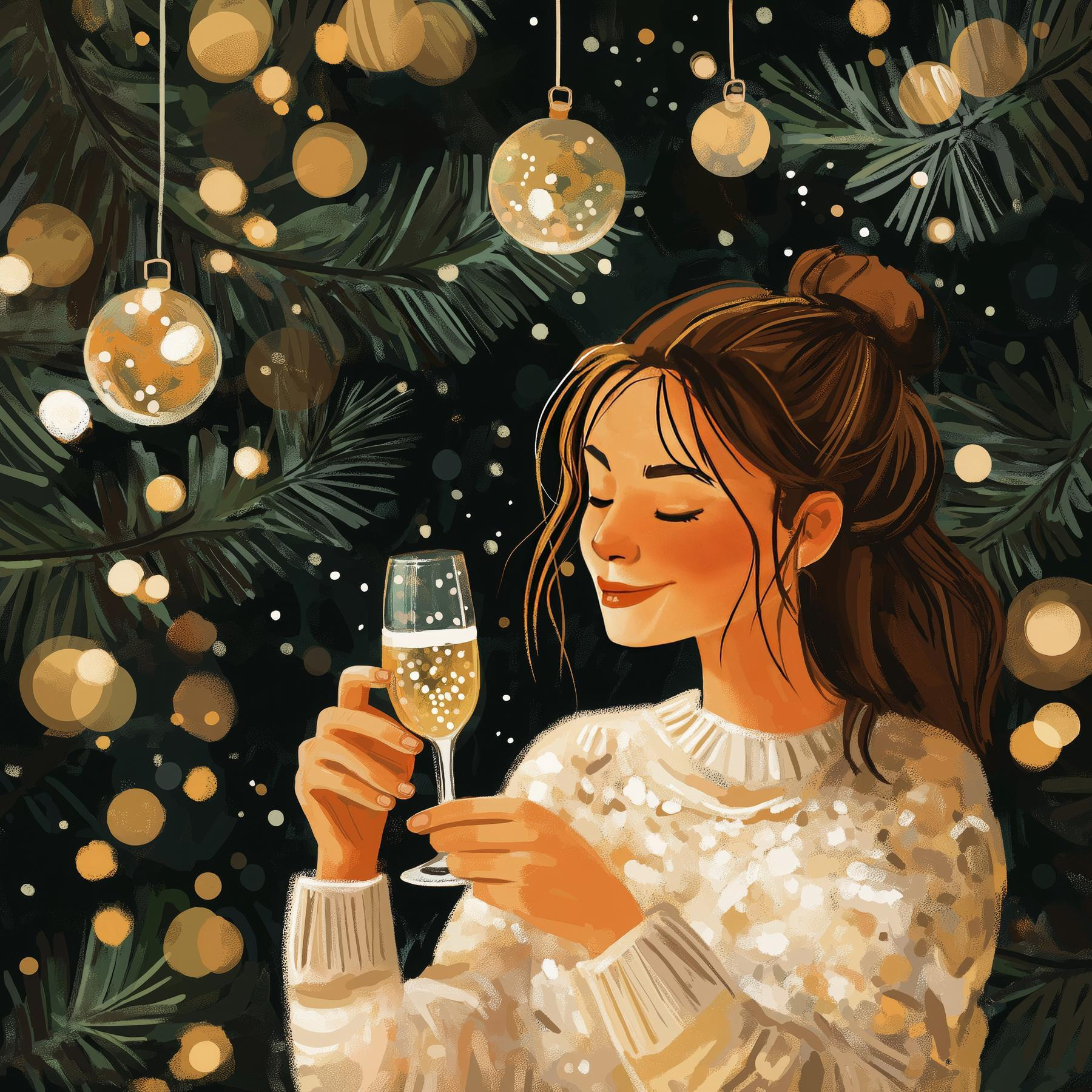 Stellen Sie sich vor, Sie machen es sich in Ihrem Wohnzimmer gemütlich, rundherum funkelnde Lichter, und dieser schöne Leinwanddruck stiehlt Ihnen die Show. Das Leinwandbild “Frau mit einem Glas Champagner unter dem Weihnachtsbaum” fängt diese fröhliche Stimmung perfekt ein. Der sanfte Schein der Ornamente und das heitere Lächeln der Frau verbreiten eine warme, einladende Stimmung, die das Gefühl vermittelt, dass jeder Tag ein Fest ist. Stellen Sie sich vor, Sie treffen sich mit Freunden – das Lachen hallt wider, die Gläser klirren, und in der Luft liegt Festtagsstimmung. Es ist wie eine Umarmung für Ihre Wände, die jeden daran erinnert, innezuhalten und die wichtigen Momente zu genießen. Verleihen Sie Ihrem Raum einen Hauch von Glanz und lassen Sie die Festtage beginnen!