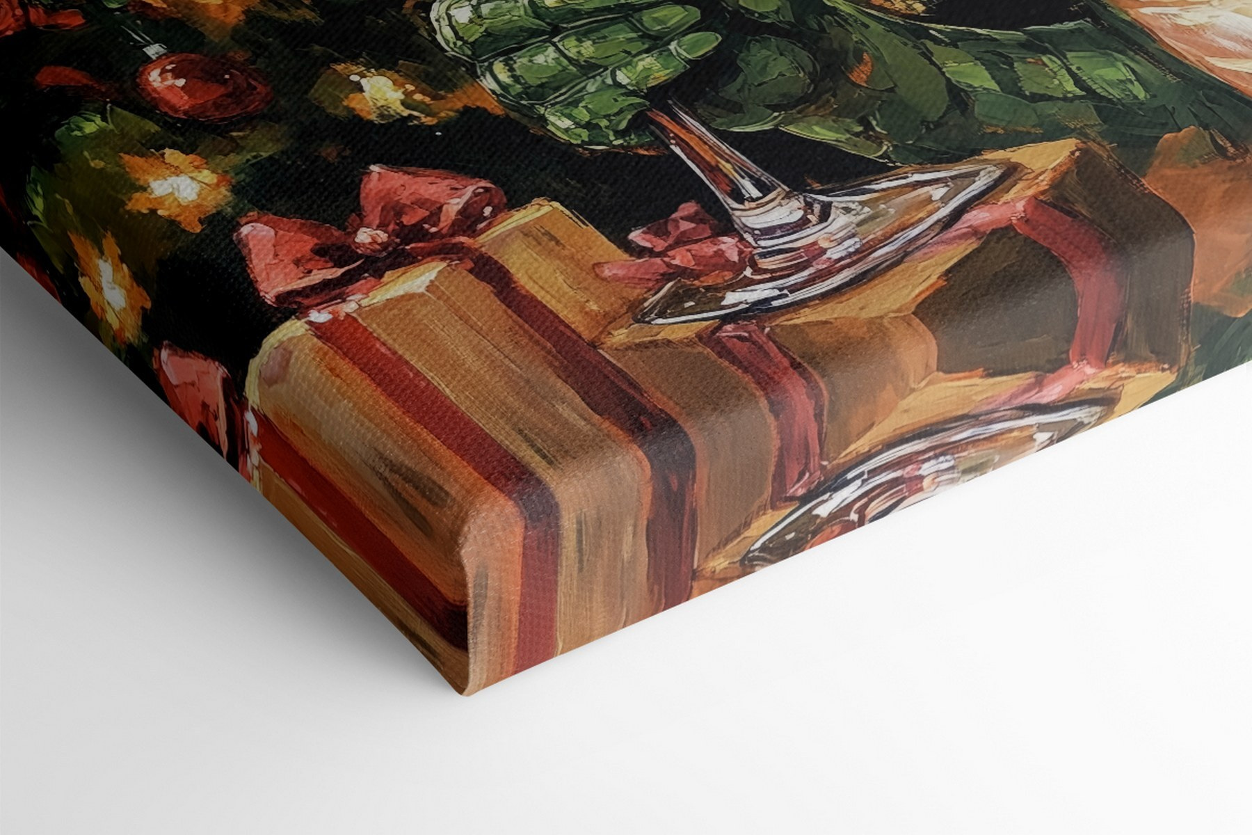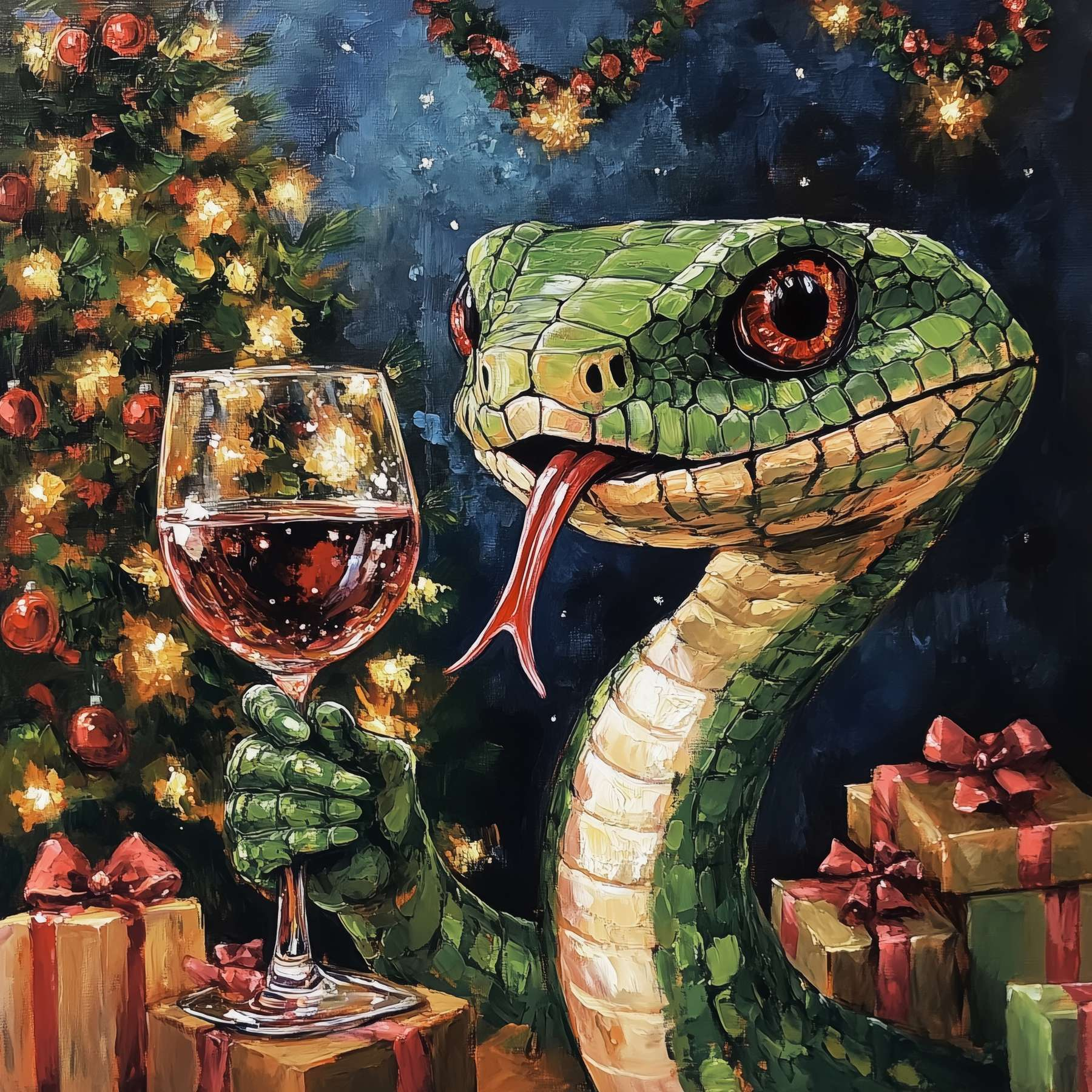 Bringen Sie einen verspielten Twist an Ihre Wand mit diesem lebendigen Leinwanddruck, der eine freche Schlange zeigt, die ein Glas Wein erhebt! Dieses schrullige Kunstwerk zeigt eine prächtige grüne Schlange voller Persönlichkeit vor einem festlichen Hintergrund und eignet sich perfekt, um einen Hauch von Charakter hinzuzufügen. Stellen Sie sich vor, wie Ihre Gäste über diese ungewöhnliche Szene kichern, während sie an ihren eigenen Getränken nippen. Es ist, als ob die Schlange jeden einlädt, sich zu entspannen und den Moment zu genießen. Dieses Kunstwerk ist ideal für Tierliebhaber oder alle, die einen lustigen Gesprächsanlass suchen, und verleiht jedem Raum ein wenig mehr Lebendigkeit und Wärme. Ein Hoch auf die einzigartige Dekoration!