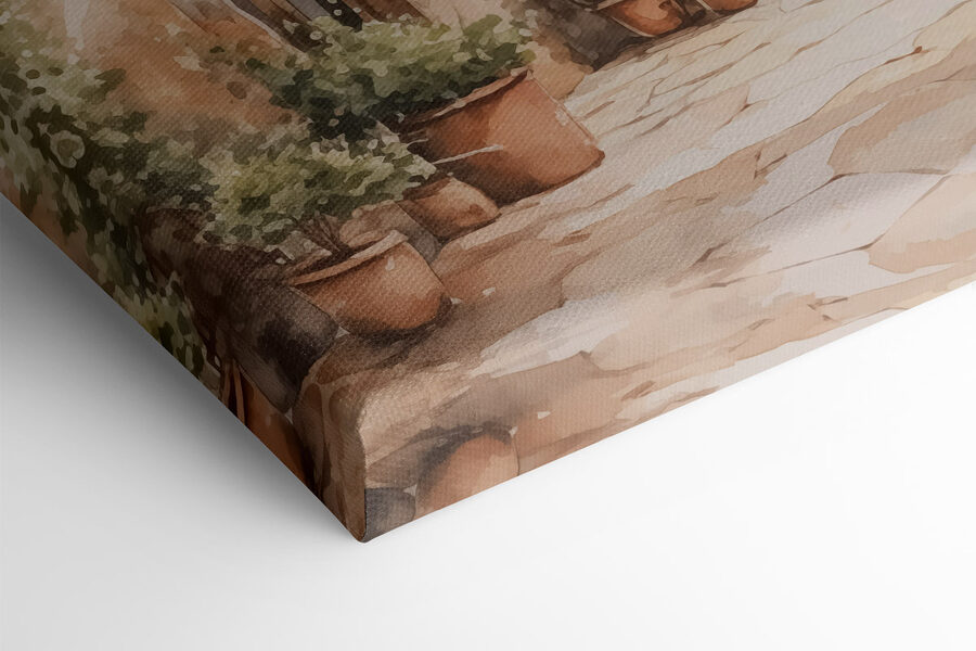 Treten Sie ein in eine Welt, in der Charme auf Ruhe trifft, mit diesem entzückenden Leinwanddruck. Diese Szene eines gemütlichen Hauses, flankiert von fröhlichen Topfpflanzen, bringt einen Hauch von Natur in jeden Raum. Stellen Sie sich vor, wie Sie an einem sonnigen Morgen an Ihrem Kaffee nippen, während die bunten Blumen Ihnen zuwinken. Die sanften Farben schaffen eine warme, einladende Atmosphäre – es fühlt sich an wie eine kleine Flucht aus dem Alltagstrott. Er eignet sich perfekt für ein Wohnzimmer oder eine gemütliche Sitzecke und erzählt Geschichten von idyllischen Häusern. Verleihen Sie den kahlen Wänden einen Hauch von Persönlichkeit; niemand hat je behauptet, dass Dekoration nicht gesprächig sein kann! Ob es sich um ein Gespräch mit Freunden oder einen Moment der Ruhe handelt, dieser Druck wird jeden Blick zu etwas Besonderem machen.