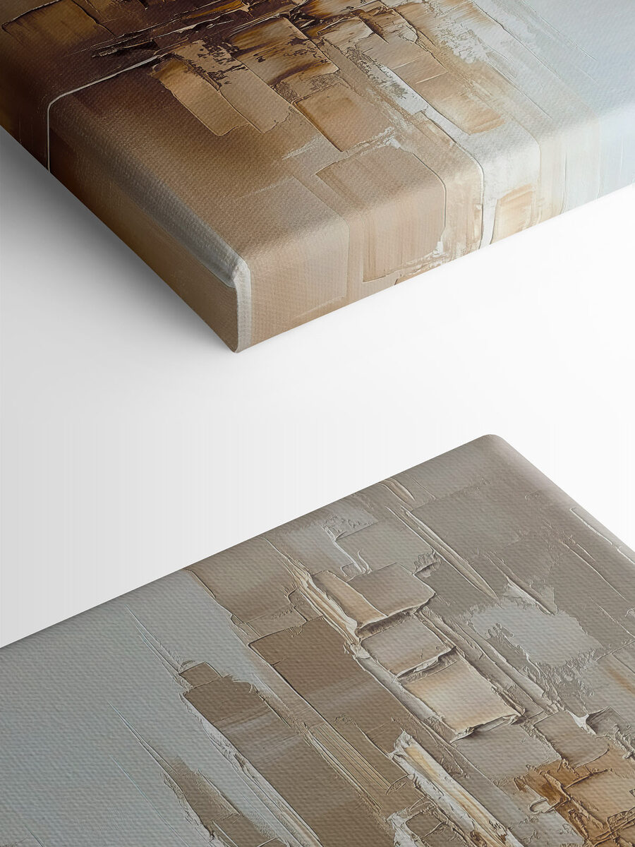 Verändern Sie jeden Raum mit diesem fesselnden Leinwanddruck – ein Gemälde einer Stadt, die sich lebendig anfühlt. Die warmen, erdigen Töne laden zu einem Gefühl der Ruhe ein, wie eine sanfte Umarmung nach einem langen Tag. Stellen Sie sich vor, wie Sie mit einem Kaffee in der Hand auf Ihrer Couch liegen und sich in der traumhaften Skyline verlieren. Dieses Stück eignet sich perfekt, um Gespräche anzuregen oder einfach von urbanen Abenteuern zu träumen. Es hat diesen mühelosen Charme, der moderne Vibes mit einer gemütlichen Ästhetik verbindet. Warum sich mit leeren Wänden zufrieden geben, wenn man ein Stück Stadt zu Hause haben kann?