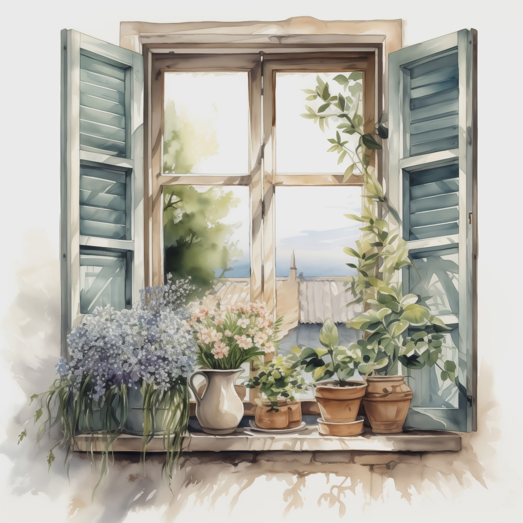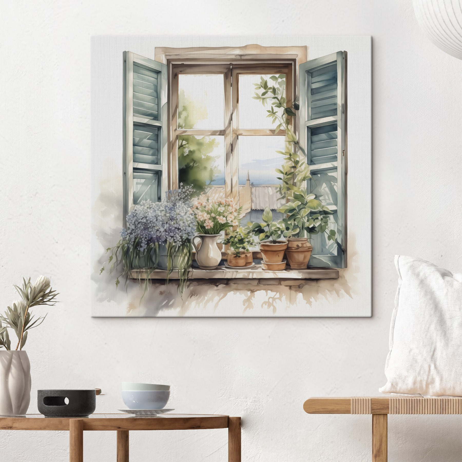 Verwandeln Sie Ihren Raum mit diesem bezaubernden Aquarellbild eines Fensters voller Topfpflanzen. Stellen Sie sich vor, wie Sie jeden Tag an dieser bezaubernden Szene vorbeischlendern – das Sonnenlicht fällt durch die Fensterläden und die lebendigen Pflanzen flüstern Ihnen die Geheimnisse der Schönheit der Natur zu. Jede Blüte und jedes Blatt fühlt sich fast lebendig an und lädt dazu ein, innezuhalten und tief durchzuatmen. Es ist wie ein Minigarten, der nicht gegossen werden muss! Dieses Kunstwerk eignet sich perfekt für gemütliche Ecken oder Wände, die einen Hauch von Frische brauchen, und sorgt mühelos für gute Laune. Denn wer wünscht sich nicht ein kleines Stück Natur im Haus?