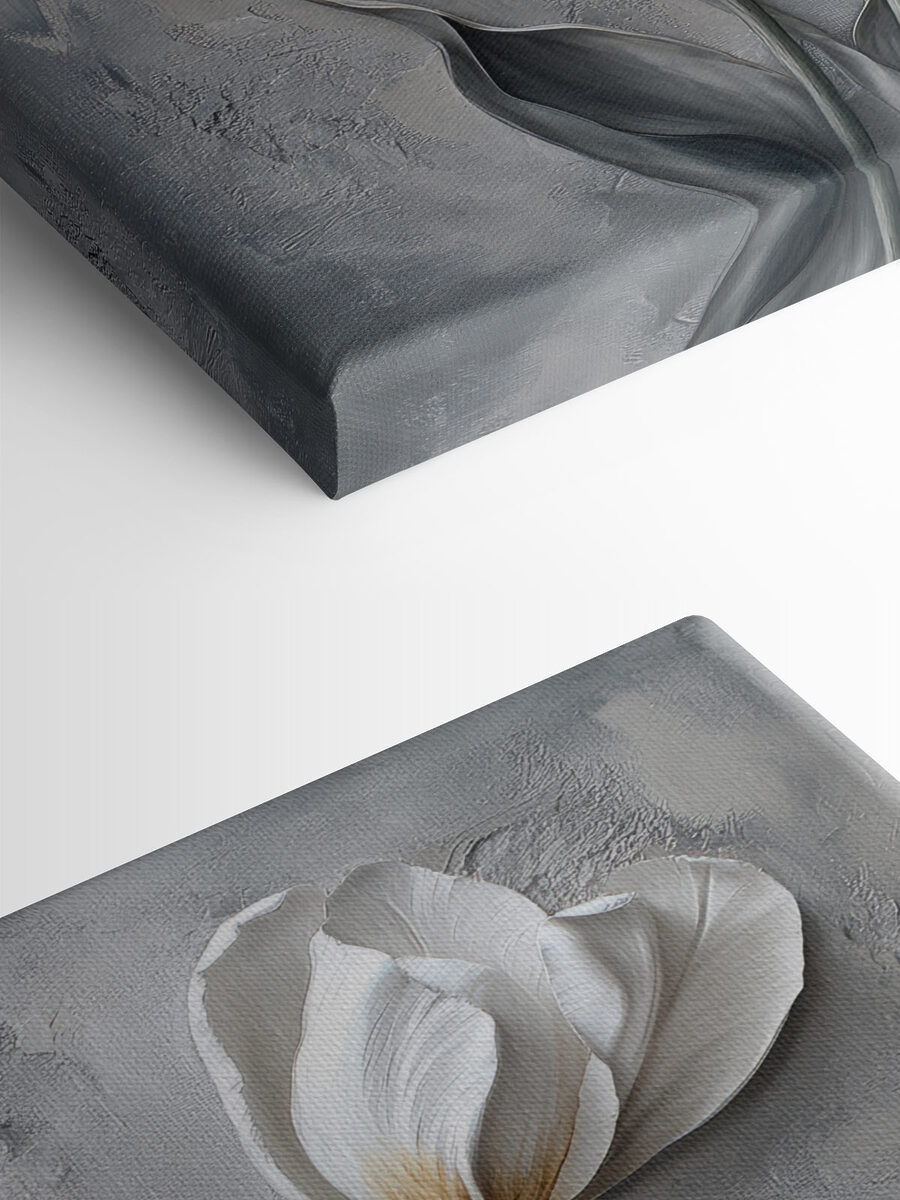 Dieser bezaubernde Leinwanddruck mit zarten weißen Blumen verwandelt jeden Raum. Es ist, als würde man einen Hauch von frischer Luft ins Haus holen – sanft, gelassen und ein bisschen verträumt. Stellen Sie sich vor, wie es Ihr Wohnzimmer oder eine gemütliche Ecke schmückt und mit seiner beruhigenden Farbgebung angenehme Schwingungen erzeugt. Jede Blume scheint eine sanfte Geschichte zu flüstern, vielleicht von Frühlingsspaziergängen oder faulen Nachmittagen. Stellen Sie sich vor, wie Sie an Ihrem Lieblingsgetränk nippen, während Sie sich an seiner Schönheit erfreuen. Dieser Druck dekoriert nicht nur, er schafft eine Stimmung, ein kleines Stück Natur, das man bewundern, betrachten und – seien wir ehrlich – Freunden zeigen kann.