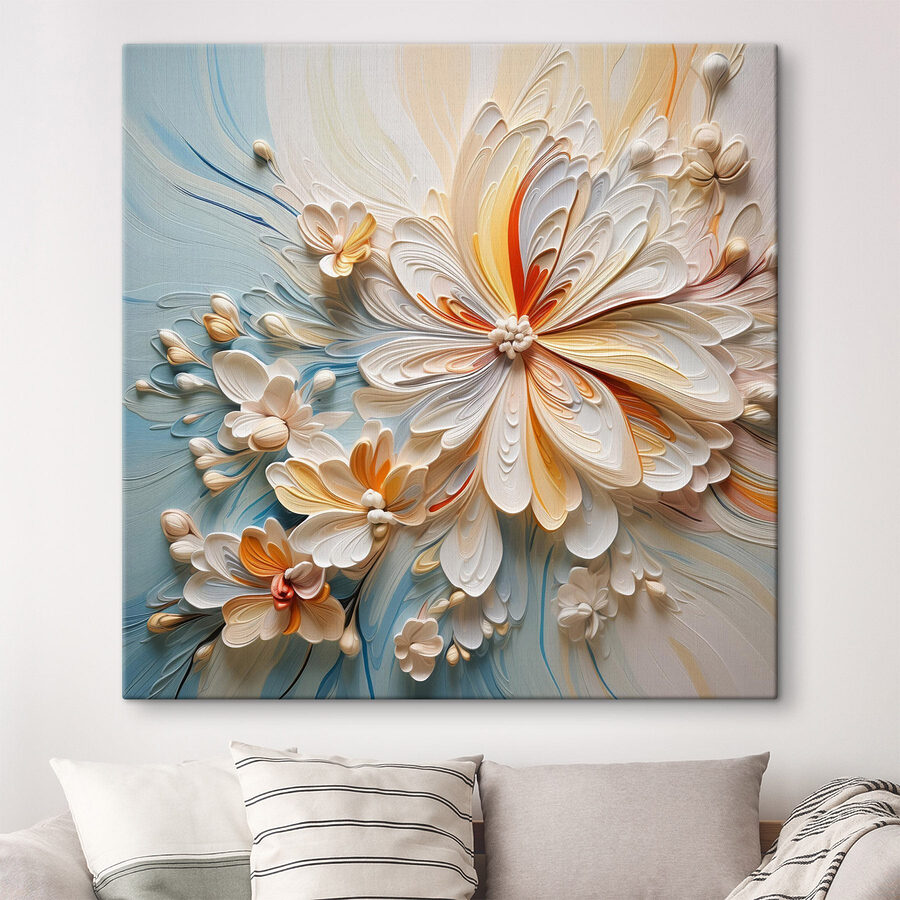 Verwandeln Sie jeden Raum in eine heitere Oase mit diesem zarten Blumendruck auf Leinwand. Stellen Sie sich vor, Sie wachen jeden Morgen mit einem sanften Tanz aus zarten Farbtönen und skurrilen Blütenblättern auf, die Ihnen praktisch zuflüstern: “Entspannen Sie sich, alles wird gut.” Es ist, als würde man sich einen frischen Garten ins Haus holen, nur ohne die lästigen Pollen. Perfekt für die leere Wand, die Ihnen einen Seitenblick zuwirft, oder für die gemütliche Ecke, die ein bisschen mehr Liebe gebrauchen könnte. Dieses Kunstwerk steht nicht einfach da, sondern lädt zu Tagträumen und warmen Tassen Tee ein und sorgt für kleine Glücksmomente im Alltag. Holen Sie sich ein Stück der Schönheit der Natur – Ihre Wände werden es Ihnen danken!