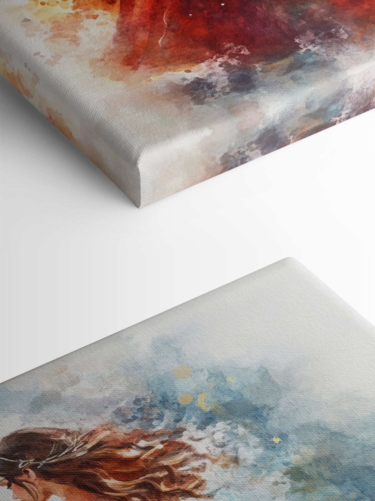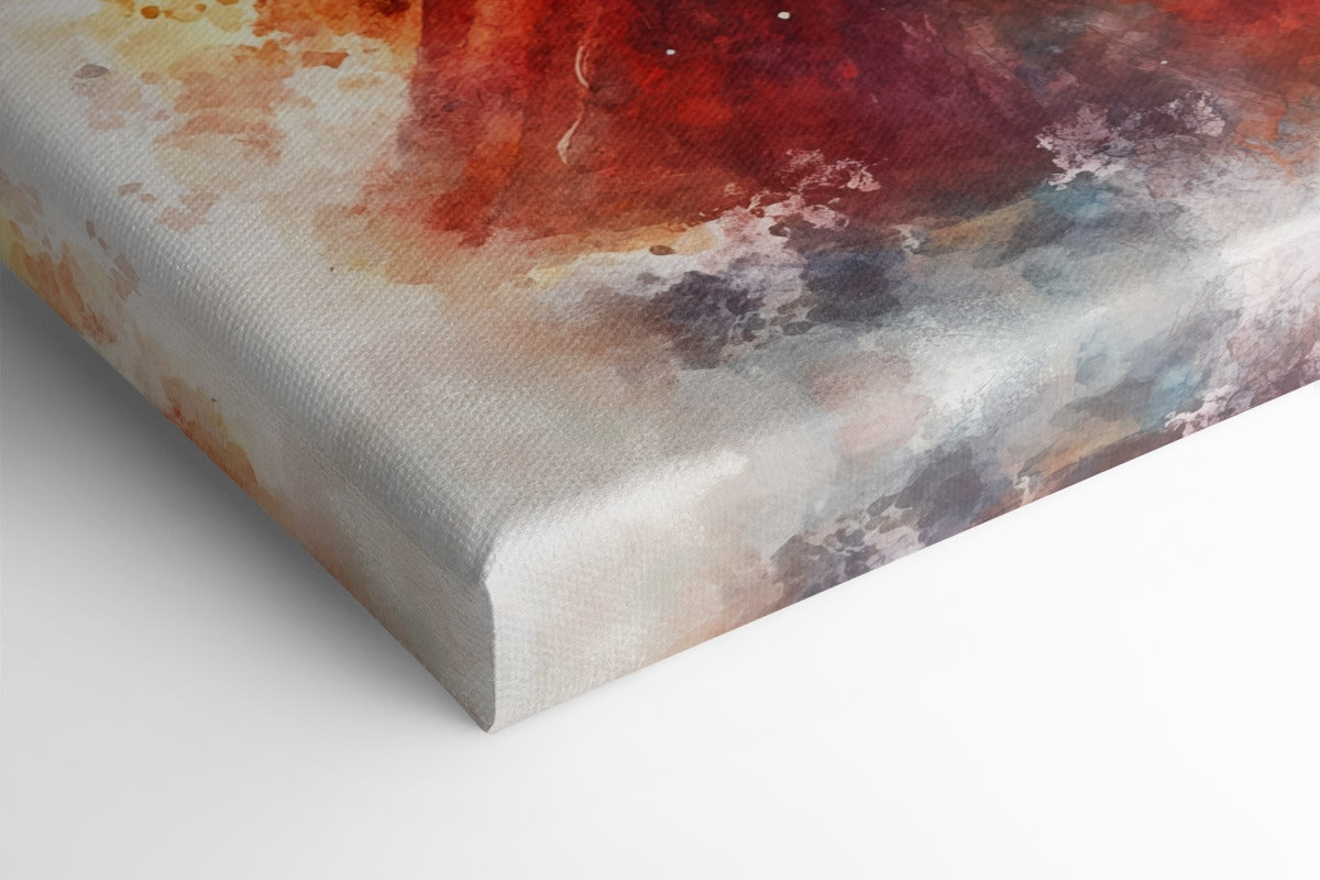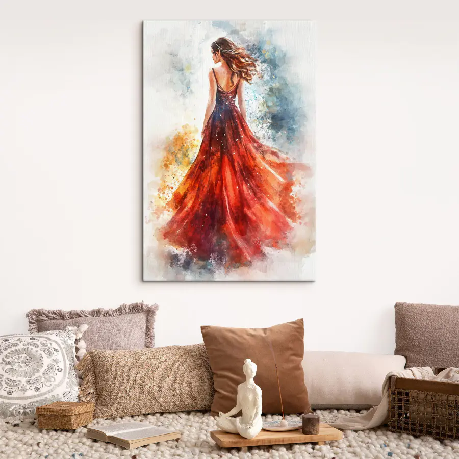 Dieser atemberaubende Leinwanddruck einer Frau in einem roten Kleid verleiht jedem Raum ein neues Gesicht. Es sieht aus, als würde sie direkt aus einem Tagtraum herausgleiten und den perfekten Moment einfangen, in dem Eleganz auf Laune trifft. Die leuchtenden Farben und die sanften Aquarellstriche erzeugen ein Gefühl der Bewegung, das fast lebendig wirkt, und verleihen Ihren Wänden einen Hauch von Dramatik.