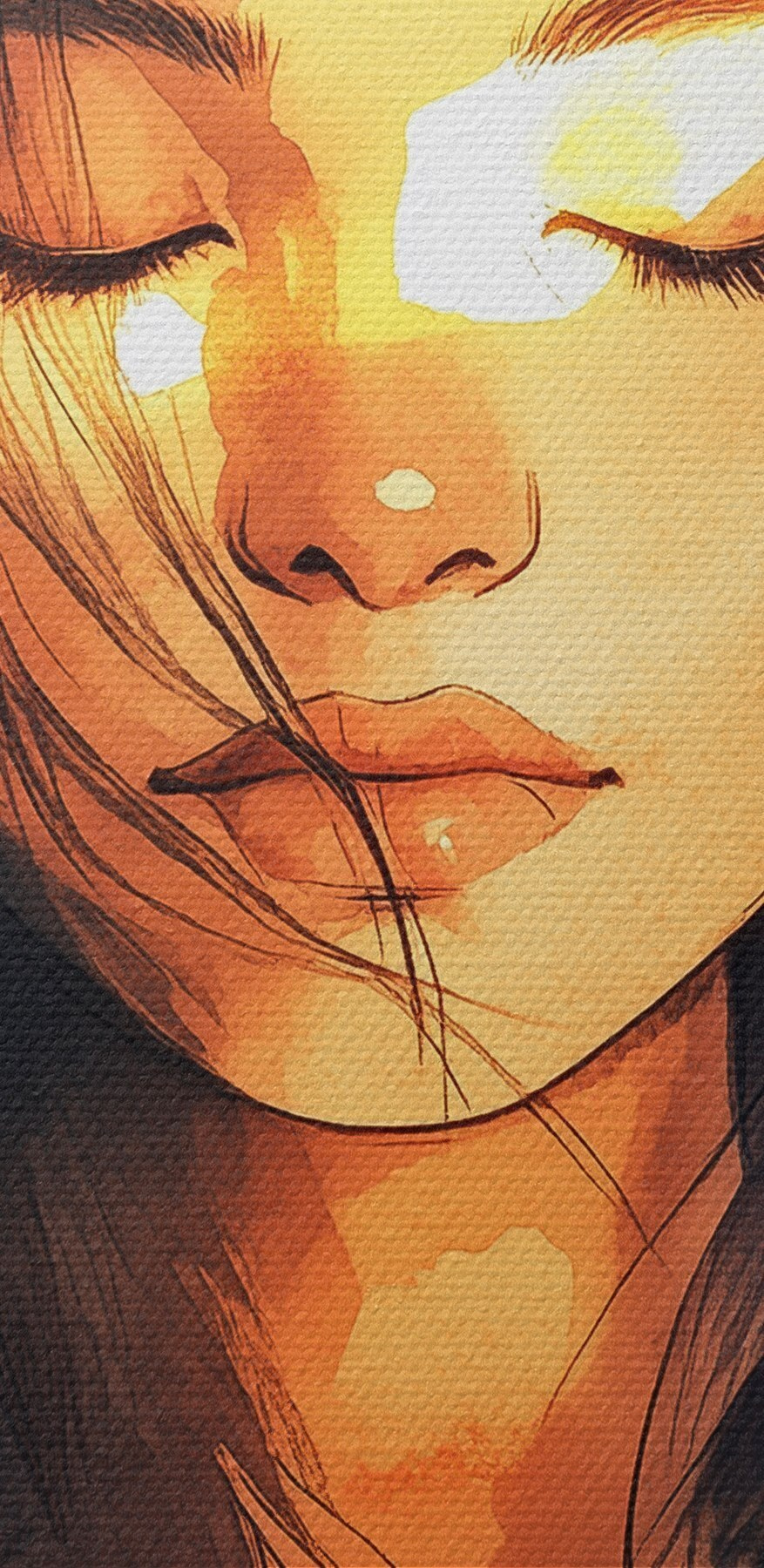 Verwandeln Sie jede Wand in einen verträumten Rückzugsort mit “Mysterious Beauty in Warm Hues”. Dieser Leinwanddruck zeigt eine bezaubernde Figur, die von einem Farbspritzer umgeben ist, der an einen Sonnenuntergang erinnert und Gefühle von Ruhe und Inspiration hervorruft. Stellen Sie sich vor, Sie kommen nach Hause zu diesem Kunstwerk – es zieht Sie an wie ein gemütliches Lagerfeuer und lädt Sie ein, sich nach einem langen Tag zu entspannen. Die sanfte Mischung aus warmen Tönen erhellt nicht nur den Raum, sondern regt auch zu Gesprächen an. Es ist perfekt für ruhige Momente der Besinnung oder wenn Freunde vorbeikommen. Perfekt ausbalanciert, flüstert es Eleganz, ohne zu laut zu sein. Wer hätte gedacht, dass eine Leinwand so beruhigend sein kann?