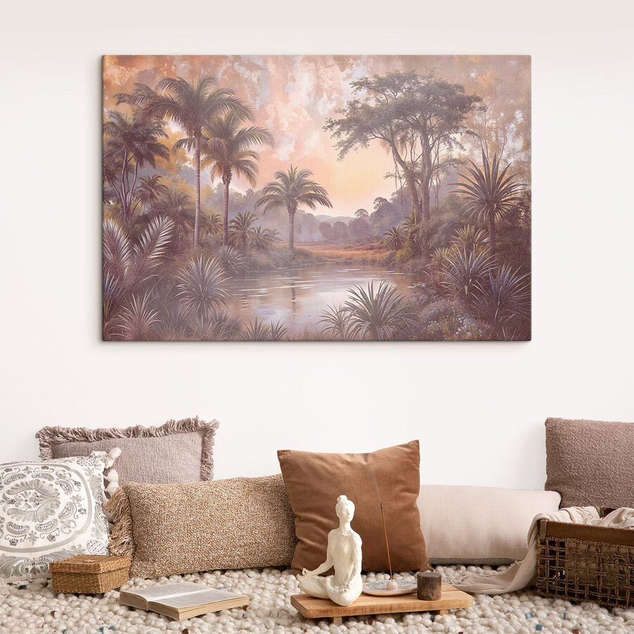Verwandeln Sie jeden Raum in einen ruhigen Rückzugsort mit diesem charmanten Leinwandbild “Fluss mit Bäumen und Pflanzen”. Stellen Sie sich vor: Sie trinken einen Tee, das Sonnenlicht fällt durch Ihr Fenster, und an Ihrer Wand hängt eine ruhige Szene mit üppigen Bäumen und einem ruhigen Fluss. Es ist, als ob Sie die Natur direkt in Ihrem Haus hätten – keine Wanderschuhe erforderlich. Die sanften Farben vermitteln ein friedliches Gefühl, das perfekt ist, um sich nach einem langen Tag zu entspannen oder eine schöne Atmosphäre für Versammlungen zu schaffen. Dieses Stück dekoriert nicht nur, es lädt auch zu Geschichten und Erinnerungen ein und macht jeden Blick zu einer kleinen Flucht in ein friedliches Paradies. Warum warten, um einen Hauch von Wildnis nach drinnen zu bringen?