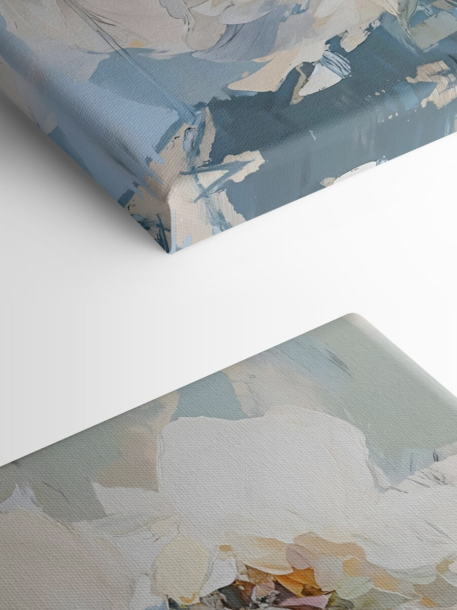 Verschönern Sie jeden Raum mit diesem atemberaubenden Leinwanddruck mit zarten Blumen vor einem beruhigenden blauen Hintergrund. Es ist, als hätten Sie einen kleinen Garten in Ihrem Zuhause – ganz ohne Gießen oder lästige Bienen. Stellen Sie sich vor, Sie gehen vorbei, erhaschen einen Blick auf die zarten Blütenblätter und fühlen sich sofort beschwingt. Perfekt, um einem Wohnzimmer, einem Schlafzimmer oder sogar einer gemütlichen Leseecke einen Hauch von Eleganz zu verleihen. Jeder Pinselstrich tanzt mit der Farbe und verleiht ihm das perfekte künstlerische Flair. Es ist die Schönheit der Natur – immer blühend, immer ein Lächeln zaubernd. Wer würde sich das nicht wünschen?