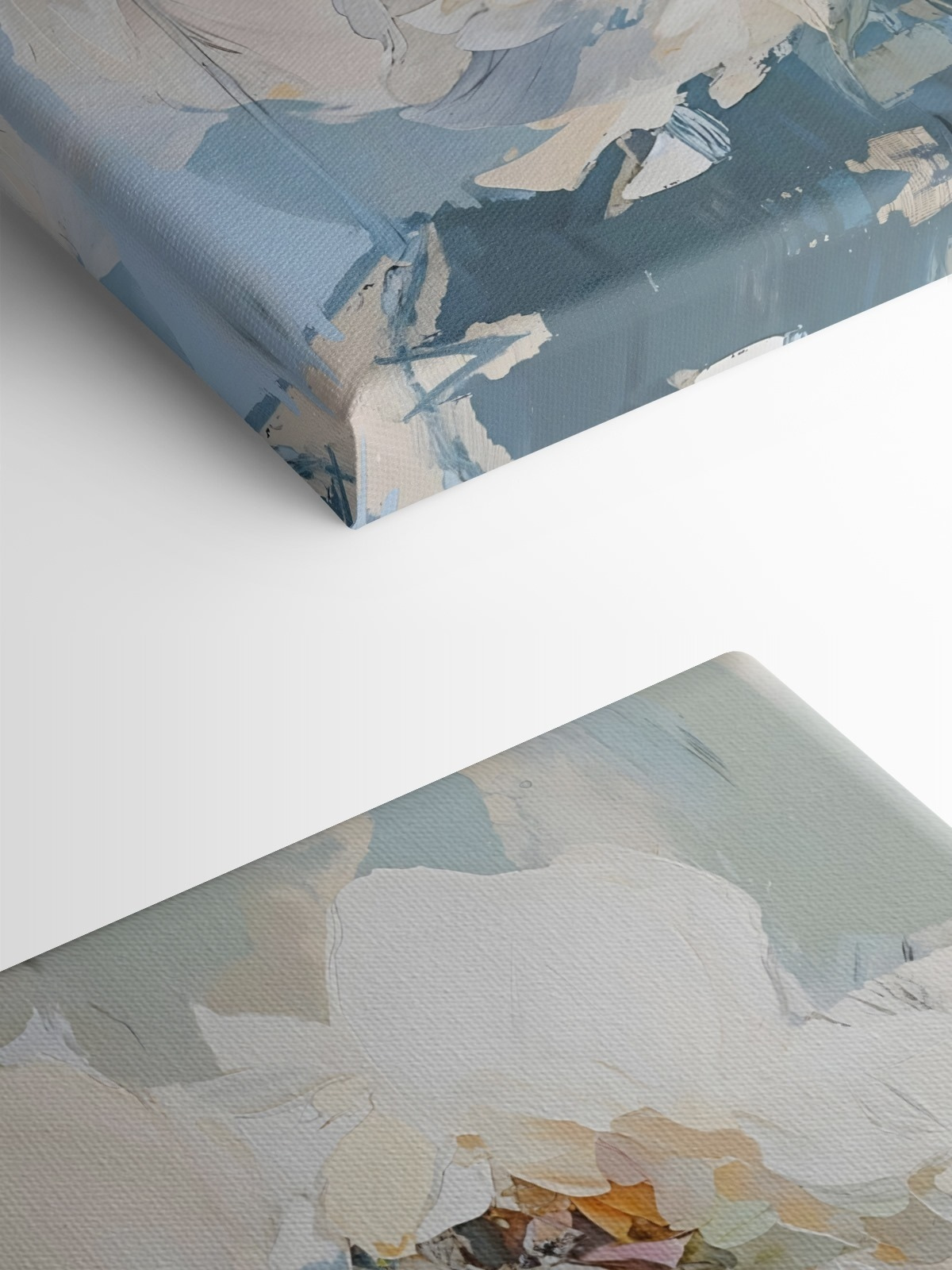 Verschönern Sie jeden Raum mit diesem atemberaubenden Leinwanddruck mit zarten Blumen vor einem beruhigenden blauen Hintergrund. Es ist, als hätten Sie einen kleinen Garten in Ihrem Zuhause – ganz ohne Gießen oder lästige Bienen. Stellen Sie sich vor, Sie gehen vorbei, erhaschen einen Blick auf die zarten Blütenblätter und fühlen sich sofort beschwingt. Perfekt, um einem Wohnzimmer, einem Schlafzimmer oder sogar einer gemütlichen Leseecke einen Hauch von Eleganz zu verleihen. Jeder Pinselstrich tanzt mit der Farbe und verleiht ihm das perfekte künstlerische Flair. Es ist die Schönheit der Natur – immer blühend, immer ein Lächeln zaubernd. Wer würde sich das nicht wünschen?