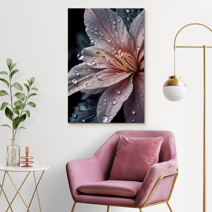 Verwandeln Sie jede Wand in einen eleganten Garten mit “Delicate Petals Adorned with Droplets”. Diese atemberaubende Leinwand fängt die Natur von ihrer schönsten Seite ein – zarte Blütenblätter, glitzernde Tropfen und ein Hauch von Magie. Stellen Sie sich vor, Sie machen es sich auf Ihrer Couch bequem, schlürfen einen Kaffee und haben das Gefühl, in eine heitere Oase eingetreten zu sein. Er ist perfekt geeignet, um einem Wohnzimmer oder sogar einer gemütlichen Ecke Wärme und Charme zu verleihen. Außerdem regt es vielleicht zum Träumen an. Wer würde sich nicht gerne in dieses Blütenparadies zurückziehen? Fügen Sie ein wenig von der Schönheit der Natur hinzu und beobachten Sie, wie der Raum zum Leben erwacht!