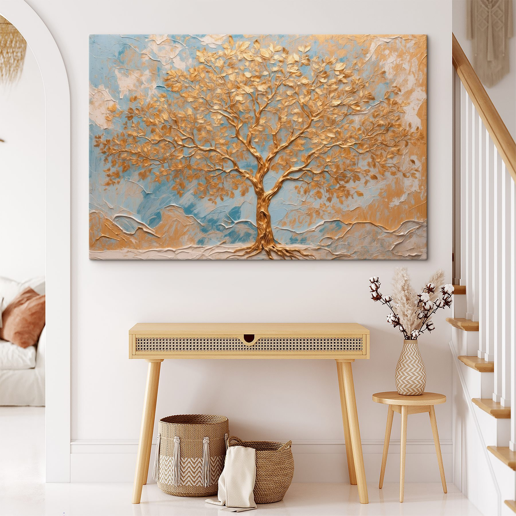 Der bezaubernde Charme dieses künstlerischen Leinwandbildes verleiht jedem Raum eine neue Dimension. Stellen Sie sich vor, dass Sie sich zurücklehnen und die Ruhe auf sich wirken lassen, wie eine sanfte Brise, die durch die Äste rauscht. Der Baum, der sich stolz vor einem ruhigen Hintergrund erhebt, erweckt jede Wand zum Leben und regt zu Momenten der Kontemplation an oder bietet einfach eine schöne Ablenkung in der täglichen Hektik. Er ist nicht nur ein Kunstwerk, sondern erzählt auch Geschichten aus der Natur und verleiht der Wand einen Hauch von Wärme und Farbe. Perfekt für gemütliche Ecken oder für die Wand, die ein wenig Persönlichkeit gebrauchen könnte – dieser Druck ist genau das Richtige für Sie!