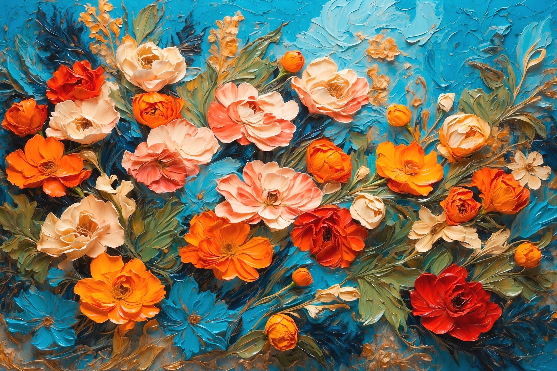 Stellen Sie sich vor, Sie betreten einen Raum und werden von einer bunten Blütenpracht begrüßt – dieser Leinwanddruck mit Blumen auf einem leuchtend blauen Hintergrund tut genau das! Es ist, als ob ein Frühlingsgarten seinen Weg ins Haus gefunden hätte und jeden, der vorbeischlendert, mit einem fröhlichen Nicken begrüßt. Jede Blume scheint mit ihren satten Farben, die sich lebendig anfühlen, direkt aus der Leinwand herauszukommen. Man kann die frischen Blütenblätter fast riechen, nicht wahr? Perfekt, um trübe Ecken aufzuhellen oder einen Farbtupfer in einen entspannten Raum zu bringen. Es ist, als hätte man die Freude der Natur an der Wand hängen – kein Gießen erforderlich! Und vielleicht inspiriert es ja auch jemanden dazu, echte Blumen mit nach Hause zu bringen. Also, wer braucht schon einen grünen Daumen? Schnappen Sie sich einfach diese Schönheit und lassen Sie sie blühen!