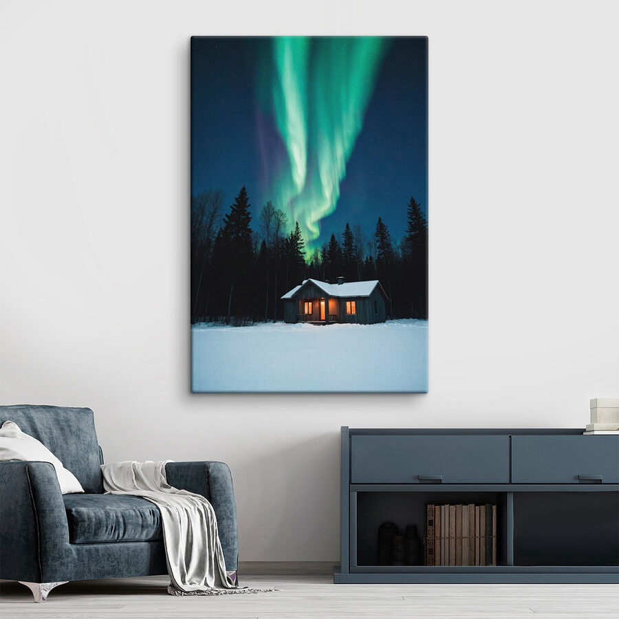 Stellen Sie sich vor, Sie machen es sich in einer warmen Holzhütte gemütlich, während die Welt draußen in eine Schneedecke gehüllt ist. Dieser atemberaubende Leinwanddruck fängt diese perfekte Winternacht mit dem magischen Tanz der grünen Lichter am Himmel ein. Es ist wie die eigene Lichtshow der Natur, direkt über Ihrem verträumten Rückzugsort. Ob am knisternden Kaminfeuer oder beim Schlürfen eines heißen Kakaos, dieses Kunstwerk bringt diese gemütlichen Gefühle in jeden Raum. Es ist nicht nur eine Dekoration, sondern ein Stückchen Ruhe, das Geschichten von friedlichen Nächten und sternenklaren Träumen erzählt. Perfekt für alle, die der Hektik des Alltags ein wenig entfliehen wollen!