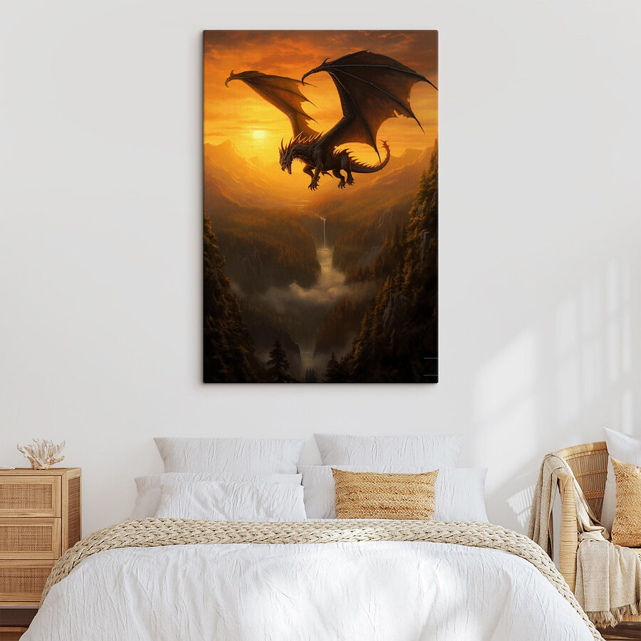 Bringen Sie einen Hauch von Abenteuer in Ihren Raum mit diesem atemberaubenden Leinwanddruck “Dragon Flying Over a Valley”. Stellen Sie sich vor: ein majestätischer Drache, der durch einen feurigen Sonnenuntergang schwebt, mit weit ausgebreiteten Flügeln, als ob er Sie einladen würde, an seiner mystischen Reise teilzunehmen. Die leuchtenden Farben und die dramatische Szenerie sorgen für ein Gefühl des Staunens und lassen jeden Blick wie eine kleine Flucht erscheinen. Dieses Kunstwerk eignet sich perfekt für ein Wohnzimmer oder eine gemütliche Leseecke, es regt Gespräche an und beflügelt die Fantasie. Es ist die Art von Kunstwerk, die Sie in eine andere Welt entführt und vielleicht sogar die eine oder andere Geschichte hervorruft. Wer möchte nicht ein bisschen Magie an seinen Wänden hängen haben?