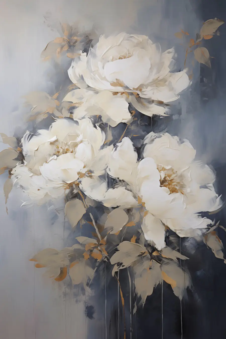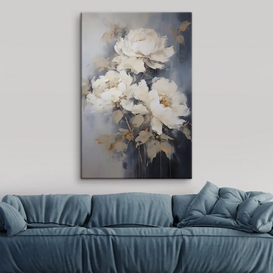 Dieser atemberaubende Leinwanddruck mit weißen Blumen verwandelt jeden Raum. Es ist, als ob Sie sich einen Hauch von frischer Luft in Ihr Zuhause holen. Stellen Sie sich vor: Sie schlürfen an einem faulen Sonntagmorgen einen Kaffee, und diese eleganten Blüten fallen Ihnen ins Auge und erhellen sofort Ihre Stimmung. Die weichen, sanften Pinselstriche schaffen eine Tiefe, die Sie in den Bann zieht und jeden Blick wie eine kleine Flucht in einen friedlichen Garten erscheinen lässt. Es ist nicht nur ein Kunstwerk, sondern ein Gesprächsanlass, herzerwärmend und einladend, perfekt für ein gemütliches Wohnzimmer oder eine ruhige Ecke im Schlafzimmer. Schenken Sie Ihren Wänden etwas Liebe!