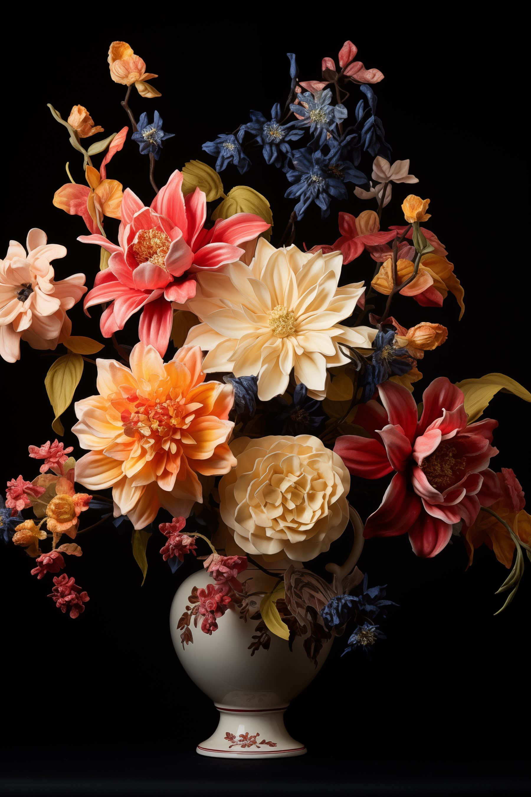 Verschönern Sie jeden Raum mit diesem atemberaubenden Leinwanddruck “Vase mit Blumen auf schwarzem Hintergrund”. Stellen Sie sich vor, Sie betreten einen Raum, der mit diesen pulsierenden Blüten gefüllt ist, die vor Farbe und Leben strotzen. Es ist, als hätten Sie einen geheimen Garten direkt an Ihrer Wand! Der Kontrast zwischen den Blumen und dem dunklen Hintergrund lässt sie auffallen, zieht die Blicke auf sich und regt zu Gesprächen an. Stellen Sie sich vor, Sie laden Freunde zum Brunch ein, und die können gar nicht anders, als diese Schönheit zu bewundern. Perfekt für Blumenliebhaber oder alle, die lebendige Kunst zu schätzen wissen. Es ist nicht nur Dekoration, sondern auch eine Stimmung – werten Sie Ihren Raum mit einem Hauch von floralem Charme auf!