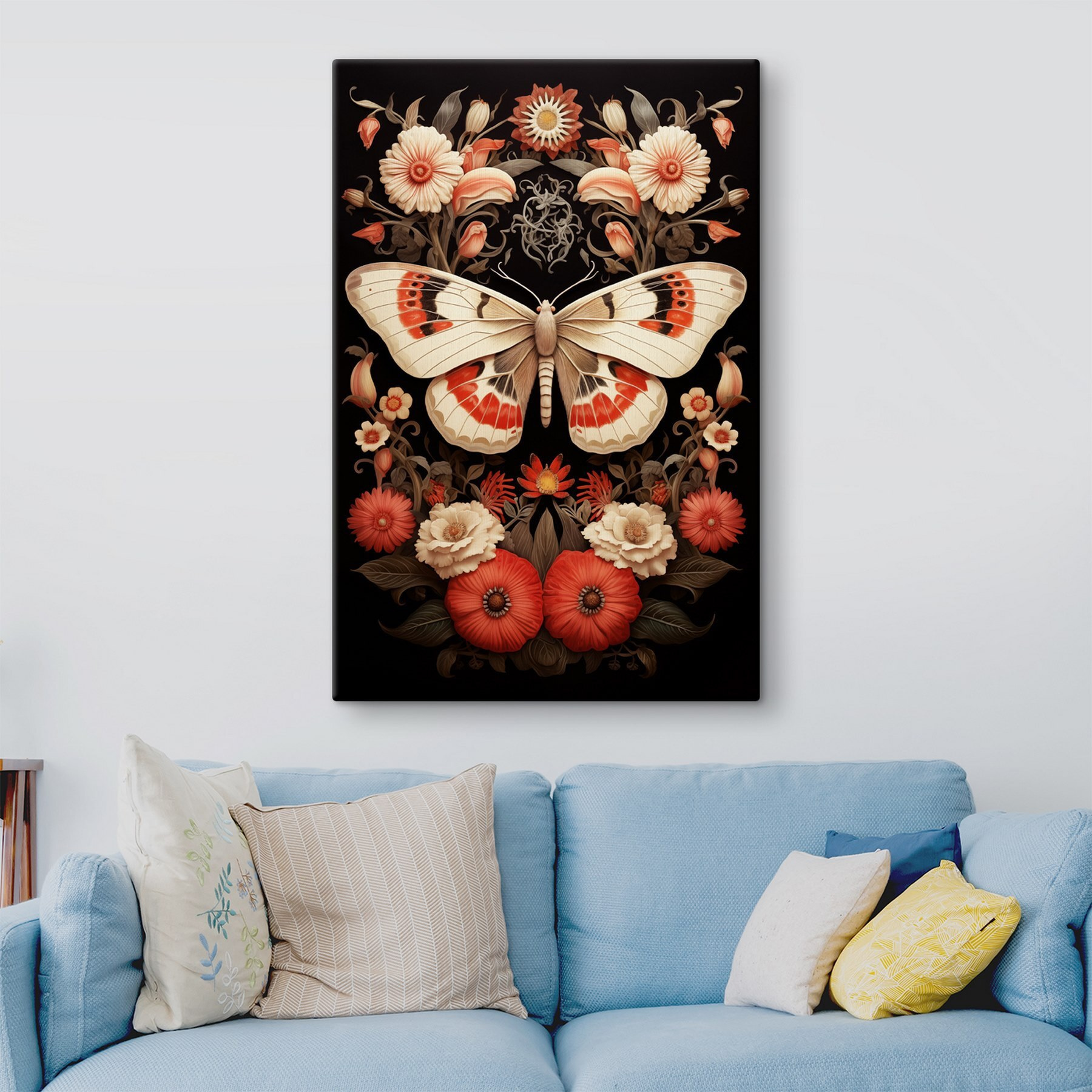 Dieser atemberaubende Leinwanddruck mit einem Schmetterling und leuchtenden Blumen vor einem satten schwarzen Hintergrund verwandelt jeden Raum. Es ist, als ob Sie die Natur direkt in Ihr Zuhause einladen würden, aber ohne das Risiko, lästiges Ungeziefer anzulocken! Stellen Sie sich vor, Sie gehen täglich daran vorbei und fühlen sich ein wenig beschwingt, als ob jede Blume ein Geheimnis verrät oder ein Lächeln schenkt. Dieses Kunstwerk kann Gespräche anregen und eine langweilige Ecke aufhellen und sie in etwas verwandeln, das warm, einladend und ein wenig geheimnisvoll wirkt. Es ist nicht nur Dekoration, sondern auch ein Stimmungsaufheller! Ob in einer gemütlichen Ecke oder einem lebhaften Wohnzimmer, dieses Stück verleiht einen Hauch von Eleganz und Charme. Perfekt für alle, die einen Hauch von Farbe und eine Prise Laune in ihrem Leben lieben!