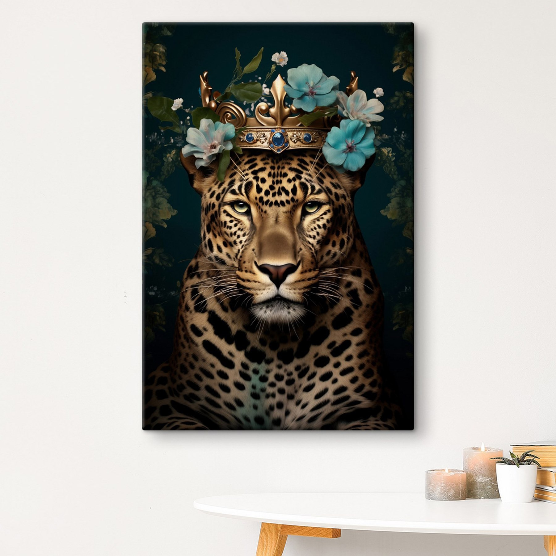 Lernen Sie den königlichen Leoparden kennen, der keine gewöhnliche Raubkatze ist. Dieser Leinwanddruck mit einer charmanten Krone und zarten Blumen gibt dem Begriff “königlich” eine ganz neue Bedeutung. Stellen Sie sich vor, wie diese auffällige Schönheit die Aufmerksamkeit an Ihrer Wand auf sich zieht und eine gemütliche und doch wilde Stimmung in Ihren Raum bringt. Es ist, als hätte man einen majestätischen Wächter, der modisch und wild ist! Sie eignet sich perfekt für ein Wohnzimmer oder ein skurriles Büro und wird mit Sicherheit für Gesprächsstoff sorgen. Und diese atemberaubenden Farben? Sie könnten jemanden dazu inspirieren, einen Spaziergang durch die Natur zu machen – oder zumindest darüber nachzudenken, während er an seinem Kaffee nippt. Jeder Blick auf dieses Stück kann Sie auf ein kleines Abenteuer entführen.