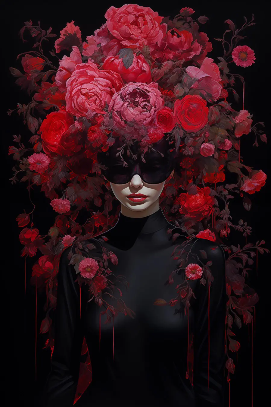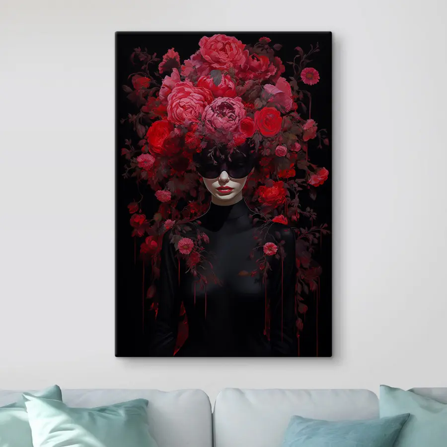 Verwandeln Sie Ihren Raum mit diesem atemberaubenden Leinwanddruck, der eine Frau mit einer Maske zeigt, die mit leuchtenden Blumen geschmückt ist. Es ist wie ein geheimer Garten an Ihrer Wand – jede Blüte strotzt nur so vor Farbe und bringt Leben in jeden Raum. Stellen Sie sich vor, Sie betreten Ihr Wohnzimmer und dieses Bild flüstert Ihnen einfach zu: “Hey, schau mal!” Die satten Rot- und Grüntöne können ein Gefühl von Wärme und Leidenschaft entfachen oder sogar einen kreativen Funken auslösen. Stellen Sie sich vor, dass Freunde hereinspazieren, ihre Blicke auf dieses fesselnde Kunstwerk richten, Gespräche anregen und vielleicht ein paar Lacher ernten. Eine perfekte Mischung aus Kühnheit und Schönheit, die wirklich ein unvergessliches Statement abgibt!