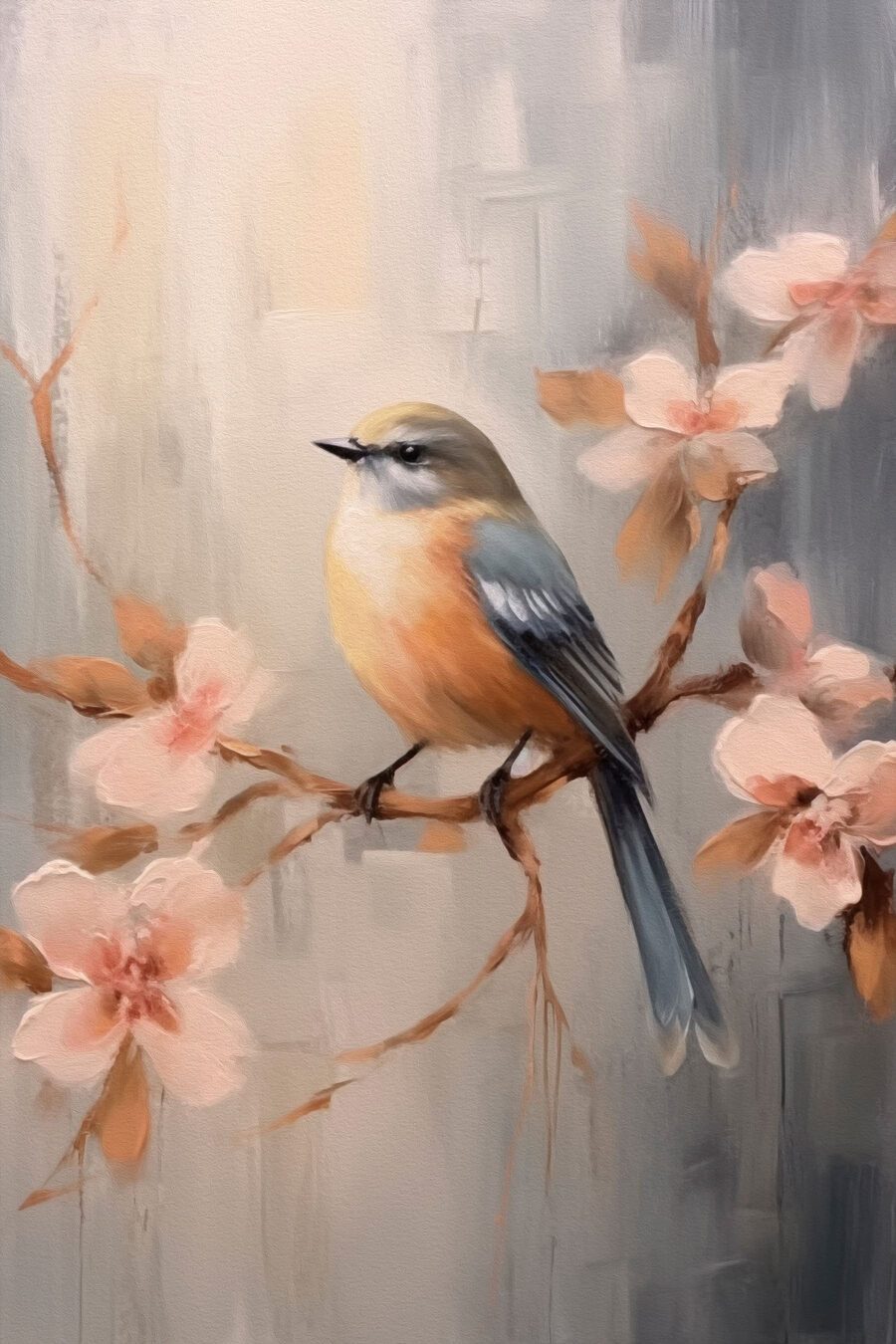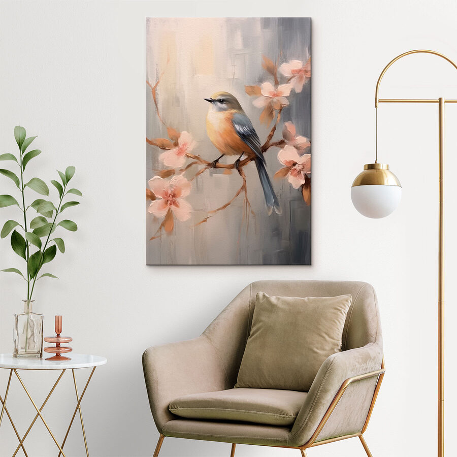 Holen Sie sich einen Hauch von Natur ins Haus mit diesem bezaubernden Leinwandbild, das einen niedlichen Vogel auf einem zarten Ast mit zartrosa Blüten zeigt. Es ist, als hätten Sie ein kleines Stückchen Natur direkt in Ihrem Wohnzimmer. Stellen Sie sich vor, wie Sie an Ihrem Kaffee nippen, während diese lebhafte Szene Ihren Tag erhellt. Die sanften Farben vermitteln ein Gefühl der Ruhe und eignen sich daher perfekt für gemütliche Ecken oder ein ruhiges Schlafzimmer. Und wer würde nicht über einen fröhlichen Vogel lächeln, der Wache hält? Es ist nicht nur Dekoration, sondern auch eine kleine Erinnerung daran, innezuhalten und die einfachen Schönheiten des Lebens zu schätzen.