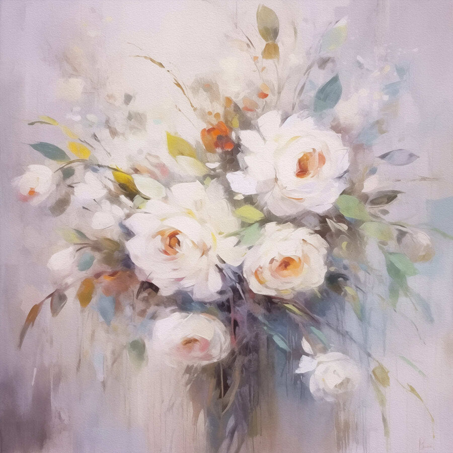 Dieser hübsche Leinwanddruck mit einem bezaubernden Strauß weißer Blumen verschönert jeden Raum. Die weichen Pinselstriche und sanften Farben schaffen eine verträumte Atmosphäre, die das ganze Jahr über Frühlingsgefühle aufkommen lässt. Stellen Sie sich vor, Sie betreten Ihren Raum, und diese Schönheit empfängt Sie mit ihrer frischen, heiteren Präsenz. Es ist, als hätte man einen kleinen Garten im Haus, ohne sich um das Gießen kümmern zu müssen! Sie eignet sich perfekt für gemütliche Ecken oder sogar als Blickfang über der Couch und lädt zu Gesprächen über die Natur, faule Nachmittage und die einfachen Freuden des Lebens ein. Und wer liebt nicht einen Hauch von Blumenzauber?