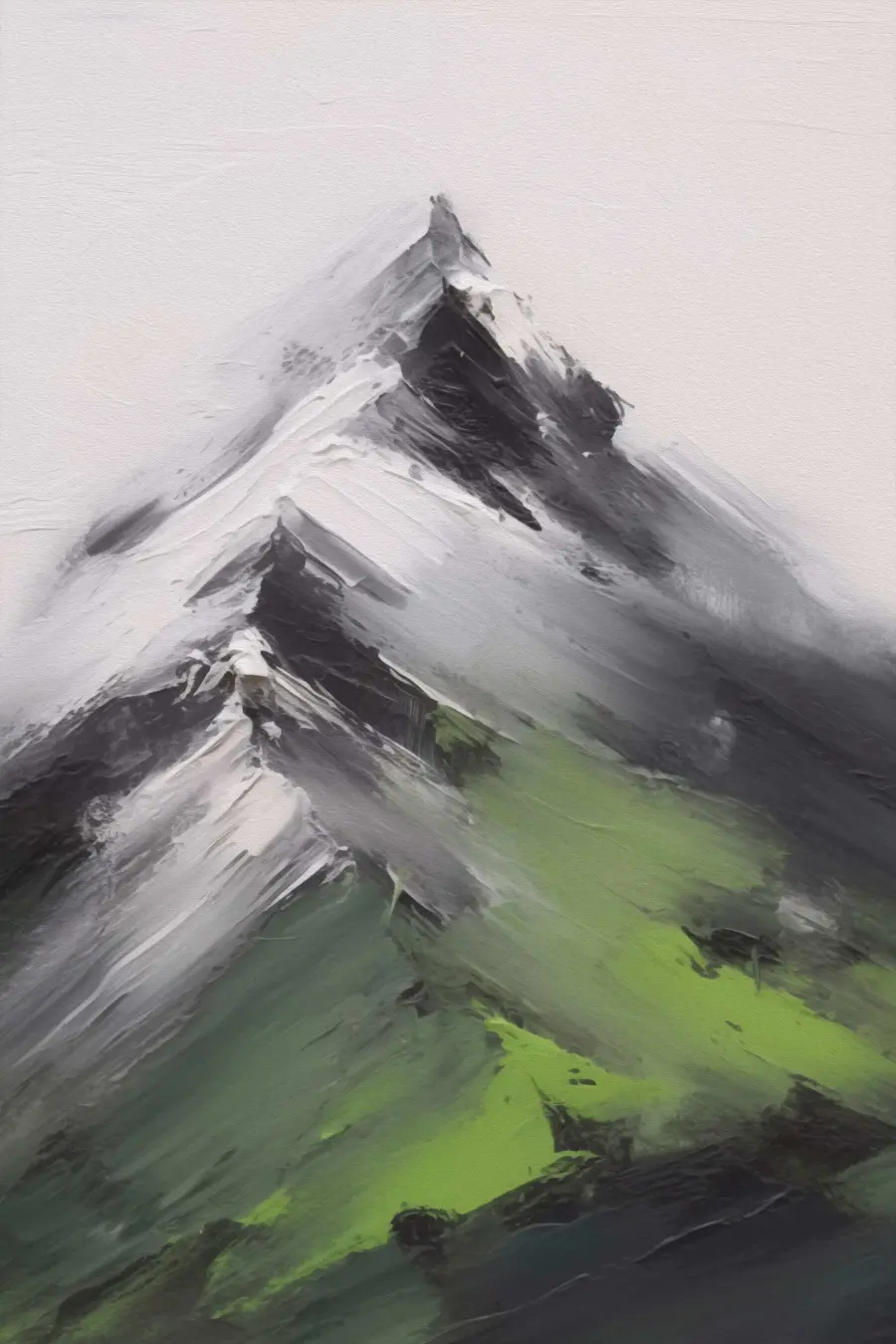 Stellen Sie sich vor, Sie betreten ein gemütliches Zimmer und werden von dem atemberaubenden Anblick eines überragenden Berggipfels begrüßt. Dieser Leinwanddruck ist nicht nur Kunst, sondern auch ein kleines Stück Natur, das Sie zu Hause haben. Die kräftigen Grüntöne und die dynamischen Pinselstriche ziehen einen in ihren Bann und geben einem das Gefühl, dass man fast auf diesen Berg wandern könnte. Es ist perfekt für jeden, der einen Hauch von Abenteuer in seiner Einrichtung mag. Ob Sie nun einen Kaffee trinken und träumen oder es sich mit einem Buch gemütlich machen, dieses Kunstwerk schafft genau die richtige Atmosphäre. Holen Sie sich die Natur ins Haus und lassen Sie Ihre Wände eine Geschichte erzählen.