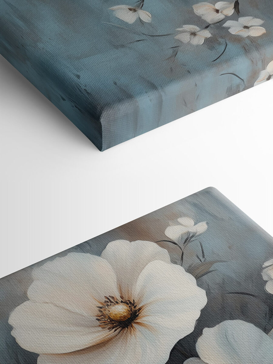 Verwandeln Sie Ihren Raum mit diesem atemberaubenden Leinwandbild mit weißen Blumen. Stellen Sie sich vor: eine sanfte Brise weht durch Ihr Fenster, während Sie Ihren Kaffee schlürfen, und diese Schönheiten fallen Ihnen ins Auge und bringen einen Hauch von Natur ins Haus. Die zarten, eleganten Blütenblätter heben sich von dem beruhigenden Hintergrund ab und schaffen eine heitere Atmosphäre, die Entspannung verspricht. Sie eignen sich perfekt für jeden Raum, ob Wohnzimmer, Schlafzimmer oder gemütliche Leseecke, und sorgen für einen Hauch von Charme und Wärme. Und mal ehrlich – wer würde seine Gäste nicht gerne mit einem so schönen Stück beeindrucken? Es ist, als ob man sich einen Garten ins Haus holt, nur ohne das Drama mit der Gießkanne!