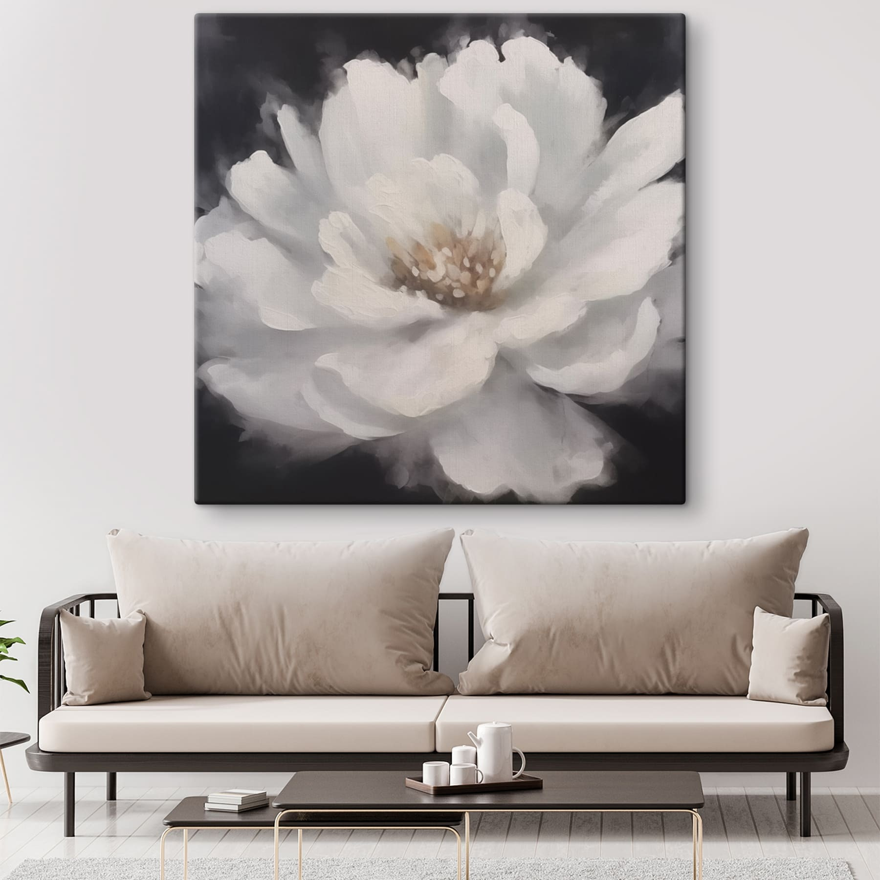 Dieser atemberaubende Leinwanddruck mit einer zarten weißen Blume mit sonnengelber Mitte verschönert jeden Raum. Es ist, als ob man sich einen Garten ins Haus holt, ohne sich um das Gießen kümmern zu müssen – ein echter Gewinn! Stellen Sie sich diese Schönheit in einer gemütlichen Ecke vor, die Ruhe und Eleganz ausstrahlt. Freunde könnten vorbeikommen und sich fragen, ob Sie heimlich einen grünen Daumen pflegen. Die weichen, verträumten Farben fügen sich nahtlos in jeden Einrichtungsstil ein, von modern bis Boho. Perfekt, um eine leere Wand zu verschönern oder einen reizvollen Blickpunkt in einem Raum zu setzen. Wer würde sich nicht wünschen, dass der Charme der Natur sein Zuhause verschönert? Es ist ein Kunstwerk, das Sie jedes Mal zum Lächeln bringt, wenn Sie einen Blick darauf werfen, wie ein Lieblingsgeheimnis unter Freunden.