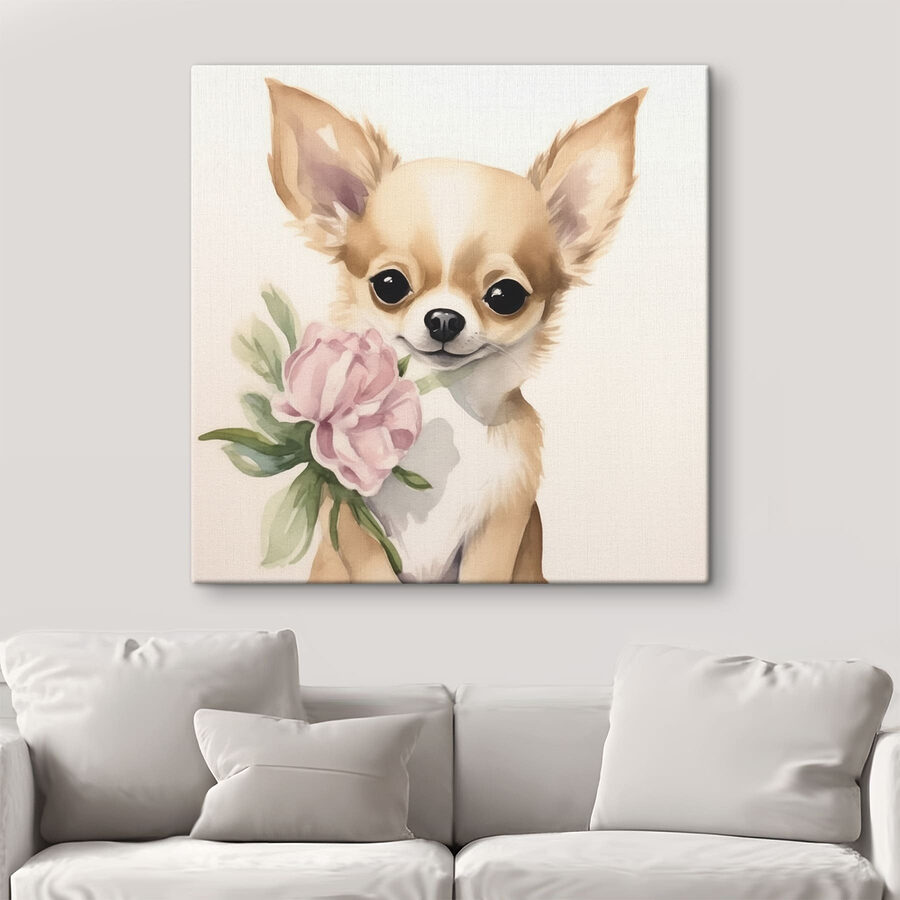 Dieser charmante Leinwanddruck mit einem Welpen, der eine Blume hält, verleiht jedem Raum einen reizvollen Touch. Wer kann diesem süßen Gesicht schon widerstehen? Es sieht so aus, als käme dieser kleine Pelzkopf gerade von einer skurrilen Gartenparty und wäre bereit, Ihren Tag zu verschönern. Mit seinen sanften Farben und seiner verspielten Ausstrahlung passt es perfekt in Wohnzimmer, Kinderzimmer oder sogar in gemütliche Cafés. Stellen Sie sich vor, Sie schauen es an, während Sie an Ihrem Kaffee nippen, und es fühlt sich an wie eine warme Umarmung. Dieses Kunstwerk ist nicht nur Dekoration, sondern ein Gesprächsanlass, ein kleiner Funke der Freude an Ihrer Wand! Wer hätte gedacht, dass ein Hund und eine Blume eine so gute Gesellschaft sein können?