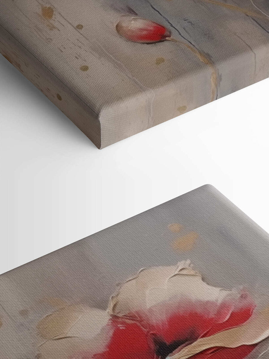 Bringen Sie einen Hauch von Natur in Ihren Raum mit diesem atemberaubenden Leinwanddruck von Blumen auf einem verträumten grauen Hintergrund. Die kräftigen Rottöne und zarten Cremetöne der Blüten warten nur darauf, die eine Wand aufzuhellen, die sich ein bisschen zu “langweilig” anfühlt. Stellen Sie sich vor, Sie machen es sich mit einem guten Buch gemütlich und blicken auf diese wunderschönen Blumen – als würden sie Ihnen ein wenig Aufmunterung geben. Perfekt für das Wohnzimmer, das Schlafzimmer oder sogar den schrulligen Flur. Vielleicht zaubern sie Ihnen sogar jedes Mal ein Lächeln ins Gesicht, wenn Sie daran vorbeigehen. Denn wer braucht nicht ein bisschen mehr Flower Power in seinem Leben?
