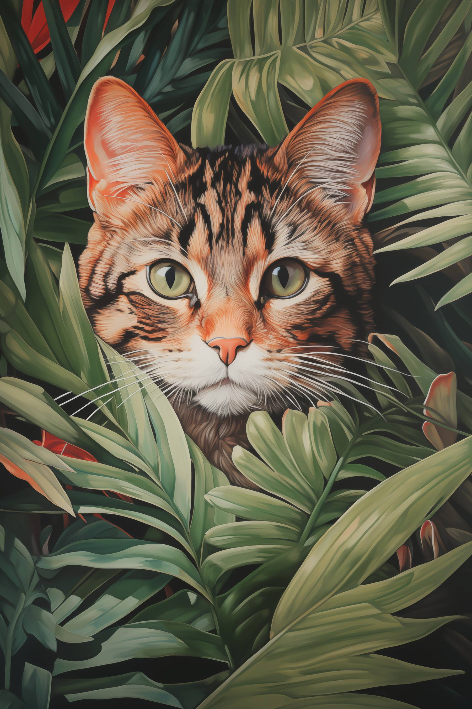 Verwandeln Sie jeden Raum in einen lebendigen Dschungel mit diesem bezaubernden Leinwandbild “Cat in a Jungle”. Stellen Sie es sich vor – eine neugierige Katze, die durch die bunten Blätter lugt, ihre großen Augen voller Schalk und Staunen. Es ist, als hätten Sie ein kleines Stück Natur in Ihrem Wohnzimmer, das Ihnen Geschichten von Abenteuern und Ruhe zuflüstert. Dieses Kunstwerk lädt zum Schmunzeln ein und regt zu Gesprächen an – perfekt für alle, die Tiere lieben oder sich einfach nach einem Hauch von Wildnis sehnen. Hängen Sie es in Ihrem Arbeitszimmer auf, und plötzlich fühlt es sich wie eine gemütliche Ecke an, in der jeder Blick einen Hauch von Freude hervorruft. Aber Vorsicht – dieser kleine Entdecker könnte Sie zum Träumen anregen!
