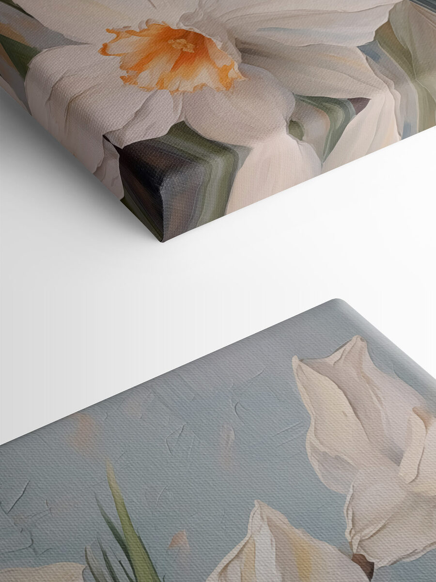 Dieser atemberaubende Leinwanddruck mit weißen Blumen bringt eine frische, natürliche Atmosphäre in jeden Raum. Stellen Sie sich vor, es hängt in einer gemütlichen Ecke, das Sonnenlicht fällt hindurch und lässt die Blütenblätter fast leuchten. Es ist wie ein Hauch von Frühling, der Wärme und einen Hauch von Eleganz versprüht. Stellen Sie sich vor, dass Freunde vorbeikommen, ihn bewundern und kommentieren, wie er den ganzen Raum heller und einladender wirken lässt. Mit seinen sanften Tönen und zarten Details verleiht dieses Stück genau den richtigen Hauch von Charme – perfekt für alle, die ein bisschen Natur im Haus lieben. Verwandeln Sie jede Wand in einen friedlichen Rückzugsort. Wer würde das nicht wollen?