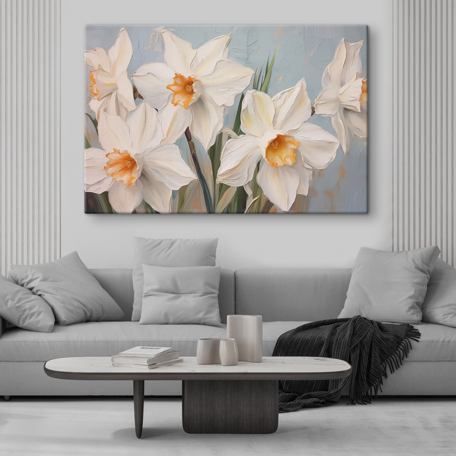 Dieser atemberaubende Leinwanddruck mit weißen Blumen bringt eine frische, natürliche Atmosphäre in jeden Raum. Stellen Sie sich vor, es hängt in einer gemütlichen Ecke, das Sonnenlicht fällt hindurch und lässt die Blütenblätter fast leuchten. Es ist wie ein Hauch von Frühling, der Wärme und einen Hauch von Eleganz versprüht. Stellen Sie sich vor, dass Freunde vorbeikommen, ihn bewundern und kommentieren, wie er den ganzen Raum heller und einladender wirken lässt. Mit seinen sanften Tönen und zarten Details verleiht dieses Stück genau den richtigen Hauch von Charme – perfekt für alle, die ein bisschen Natur im Haus lieben. Verwandeln Sie jede Wand in einen friedlichen Rückzugsort. Wer würde das nicht wollen?