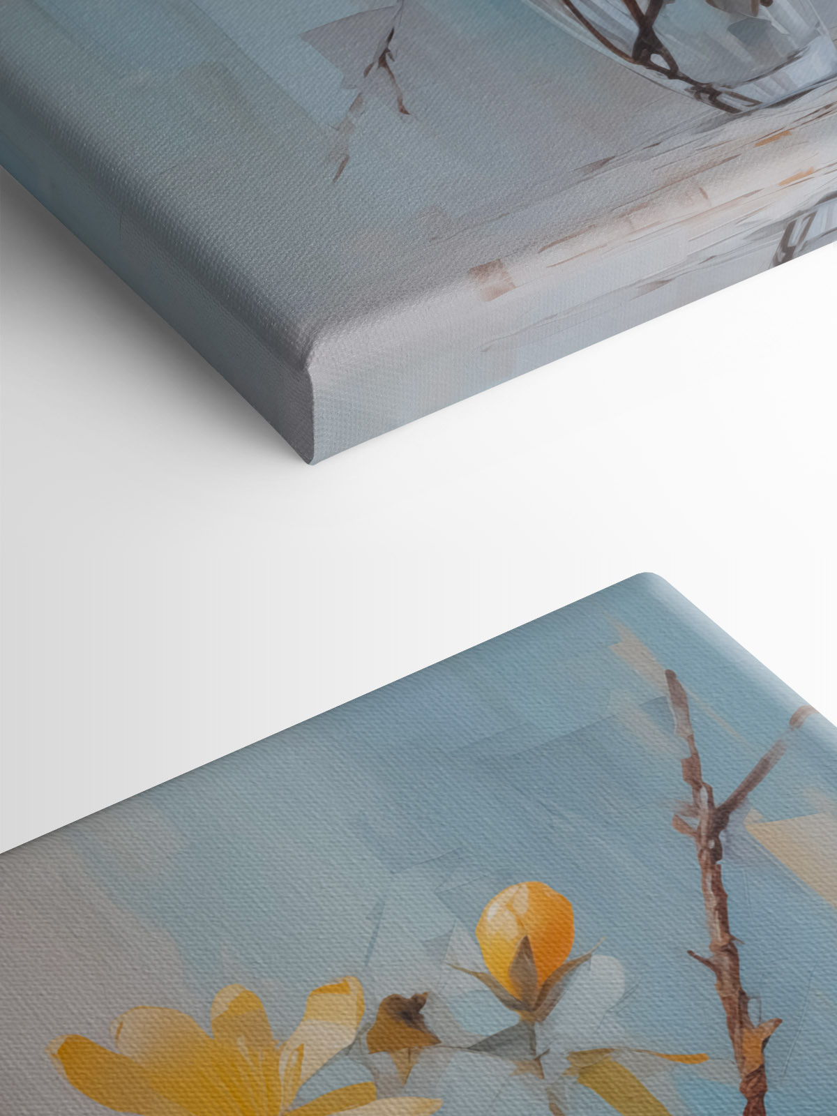 Verschönern Sie jeden Raum mit dem bezaubernden Leinwandbild “Gelbe Blumen in einer Glasvase”. Es ist, als hätte man das ganze Jahr über ein kleines Stück Sommer! Stellen Sie sich vor, Sie betreten einen Raum und werden von diesen schönen Blüten begrüßt – im Ernst, sie blühen fast in Ihrem Herzen. Die fröhlichen Gelbtöne heben sich von einem beruhigenden blauen Hintergrund ab und schaffen eine Atmosphäre, die einladend und frisch wirkt.